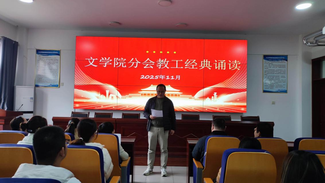 本网讯(通讯员 腾剑锋 文/图)为弘扬中华优秀传统文化,营造书香学院氛围,文学院分会于近日组织开展了经典诵读活动。