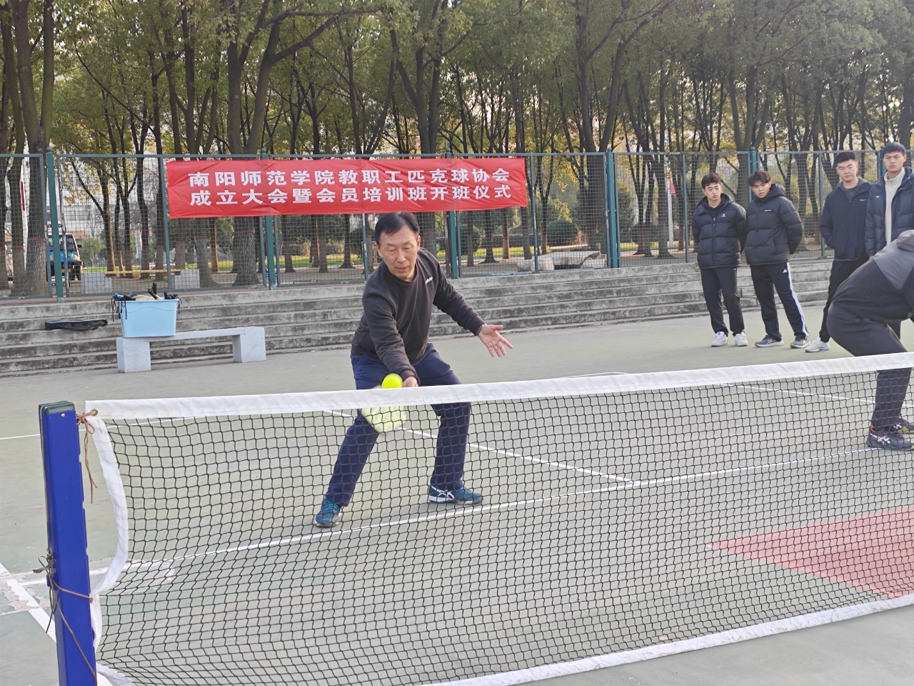 南阳师范学院校园文化再添新亮点!为积极响应全民健身号召,丰富教职工精神文化生活,南阳师范学院教职工匹克球协会成立仪式于2025年12月3日在中区匹克球场隆重举行。几十名首批会员共同见证了这一激动人心的时刻。