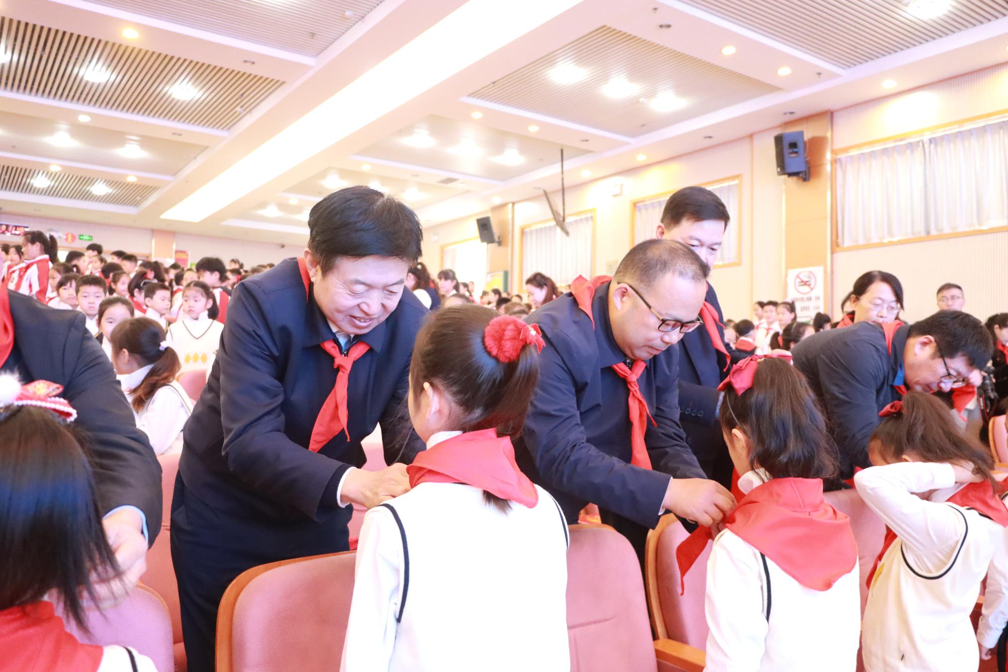活动伊始,市第十五小学少先队辅导员宣布新入队少先队员名单。参会领导、少先队辅导员、老少先队员为新队员佩戴红领巾。