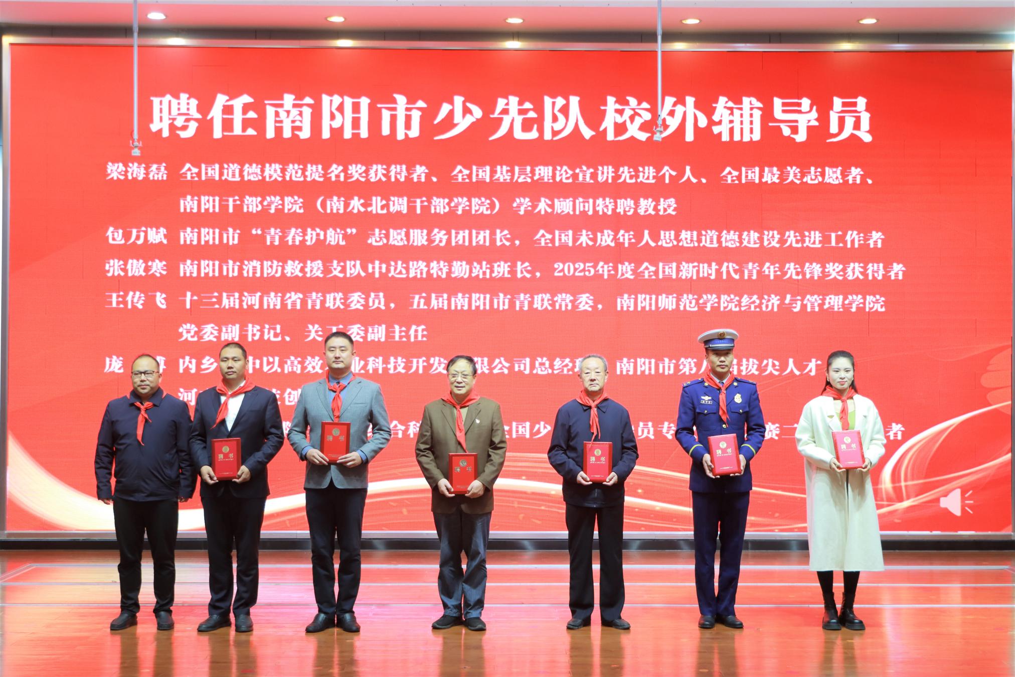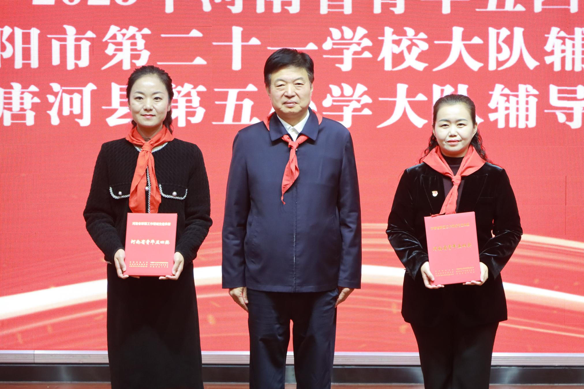 随后,刘永国为荣获2025年河南省青年五四奖先进个人和先进集体的代表颁奖。李冬冬为我校经管院党委副书记、关工委副主任王传飞等6人颁发少先队校外辅导员聘书。最后,市第十五小学等单位师生员工进行主题队会展示。
