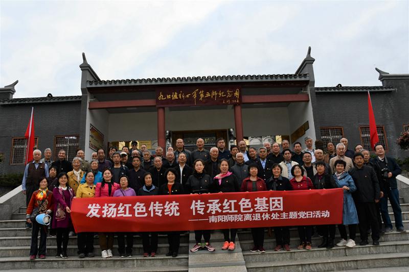 本网讯(李敏/文刘长运/图)为庆祝中国共产党成立100周年,扎实推进党史学习教育,引导党员干部坚定信念,牢记初心使命。4月22日,离退休职工工作处党委组织离退休老党员赴随州九口堰新四军五师司令部、政治部旧址、张体学纪念馆,开展“发扬红色传统传承红色基因”主题党日活动。