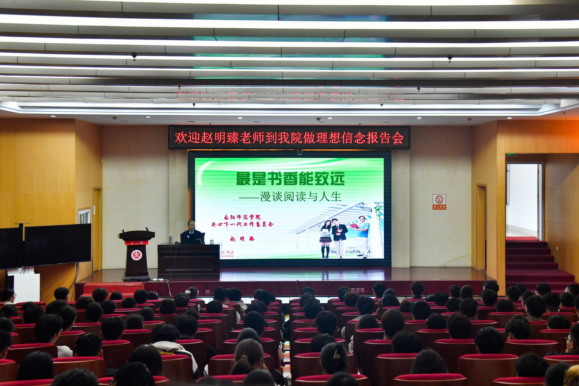 南阳师范学院理想信念报告团成立于2002年10月,23年来,南阳师范学院理想信念报告团始终以引领青年成长为核心,持续为学生开展专题报告,引导青年学子锚定远大理想、践行人生价值,是学校关心下一代工作委员会的重点工作载体,也是学校大学生思想政治教育的特色品牌,已深耕成为河南省高校思想政治工作优秀品牌。
