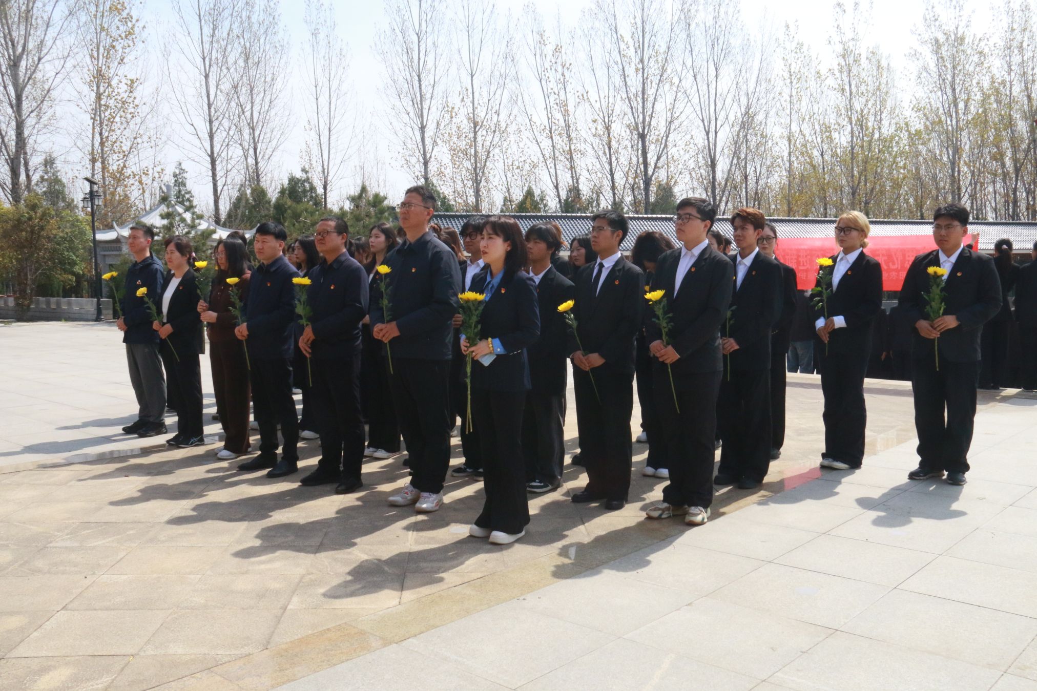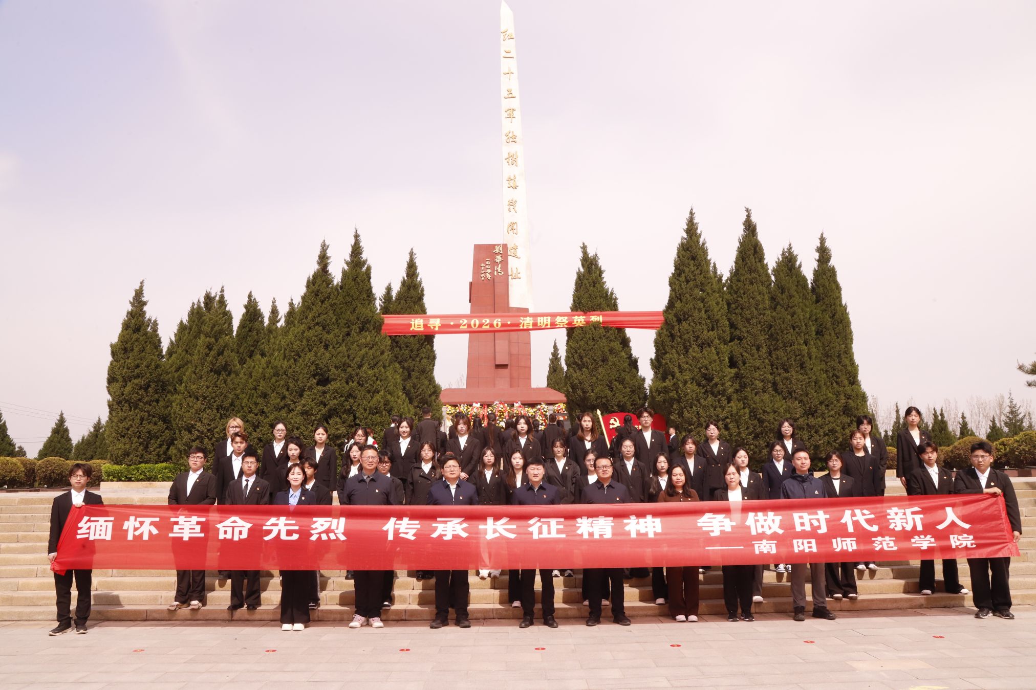 本网讯(杨眉/文 马海菡 朱彤彤/图)时序清明,缅怀英烈;回望征程,赓续荣光。今年是中国共产党成立105周年、中国工农红军长征胜利90周年。4月2日,在清明节到来之际,党委宣传部、校团委相关负责人及校级“青马工程”学生骨干、国旗班代表等60余人前往方城县独树镇纪念馆开展“缅怀革命先烈,传承长征精神”清明祭扫活动。