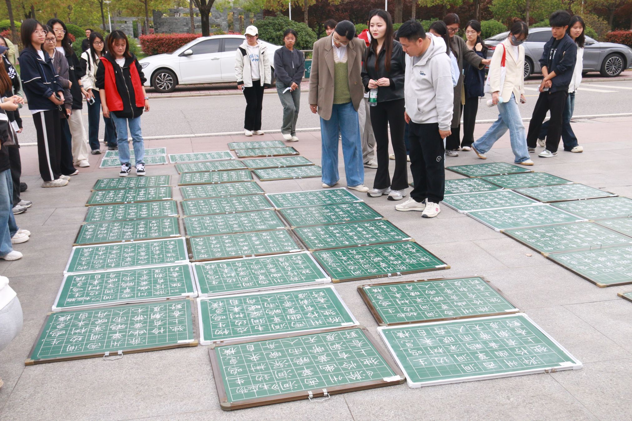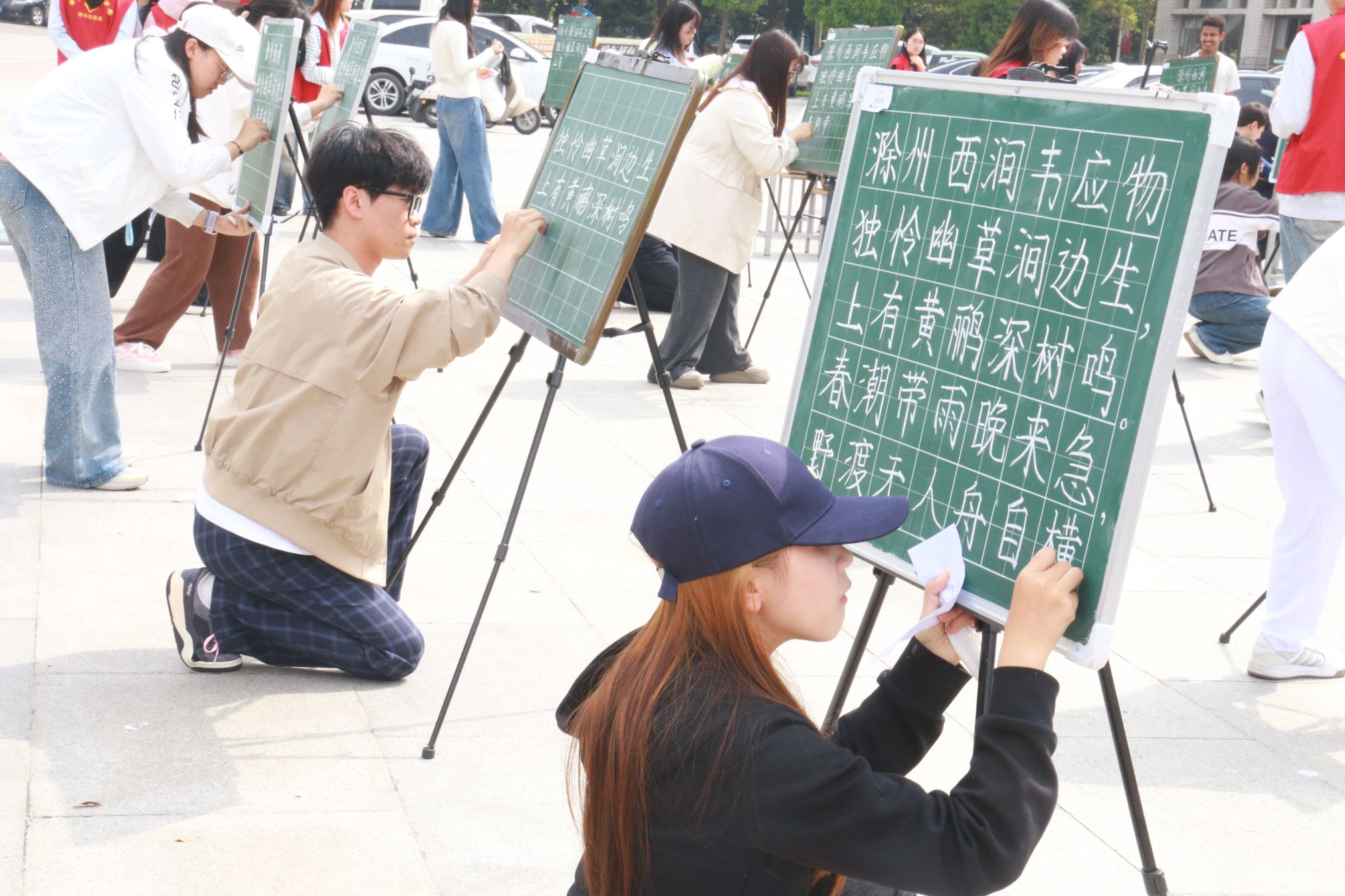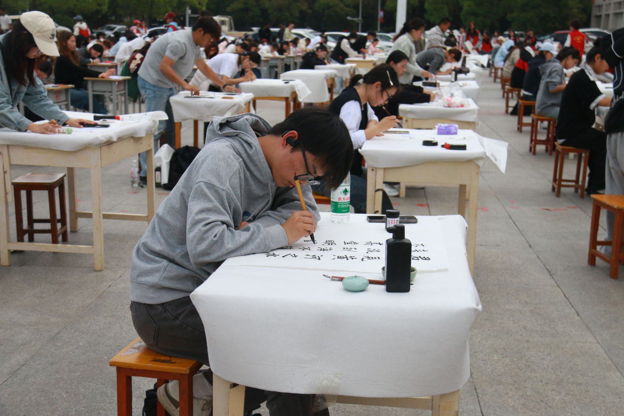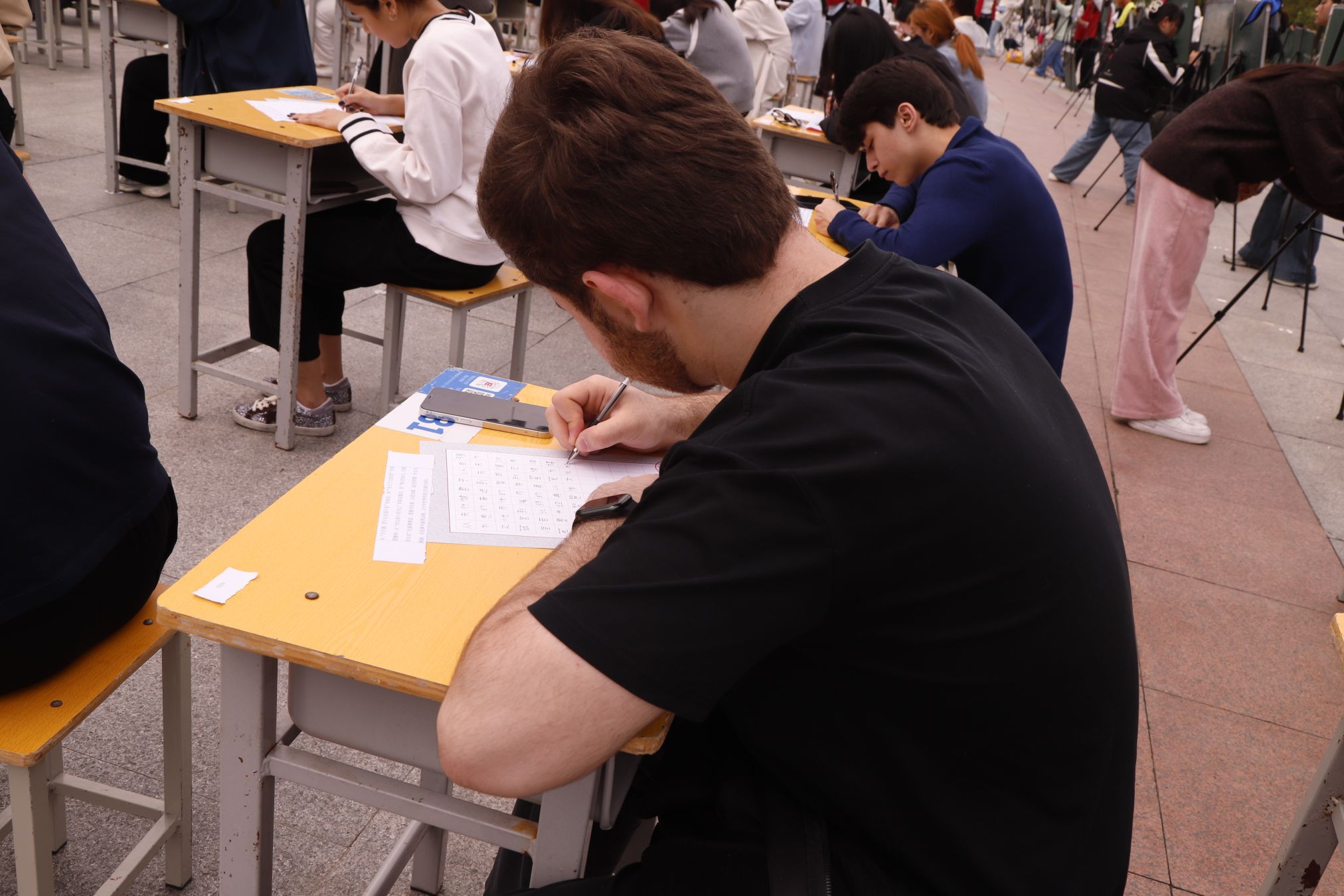 赛场上,来自全校各学院的240名参赛选手和34名留学生凝神静气,挥毫泼墨。粉笔字板书工整规范、尽显教学功底;硬笔字笔锋刚劲,力透纸背;毛笔字气韵生动,墨韵悠长,充分展现出南师学子扎实的书写功底与浓厚的校园文化氛围。