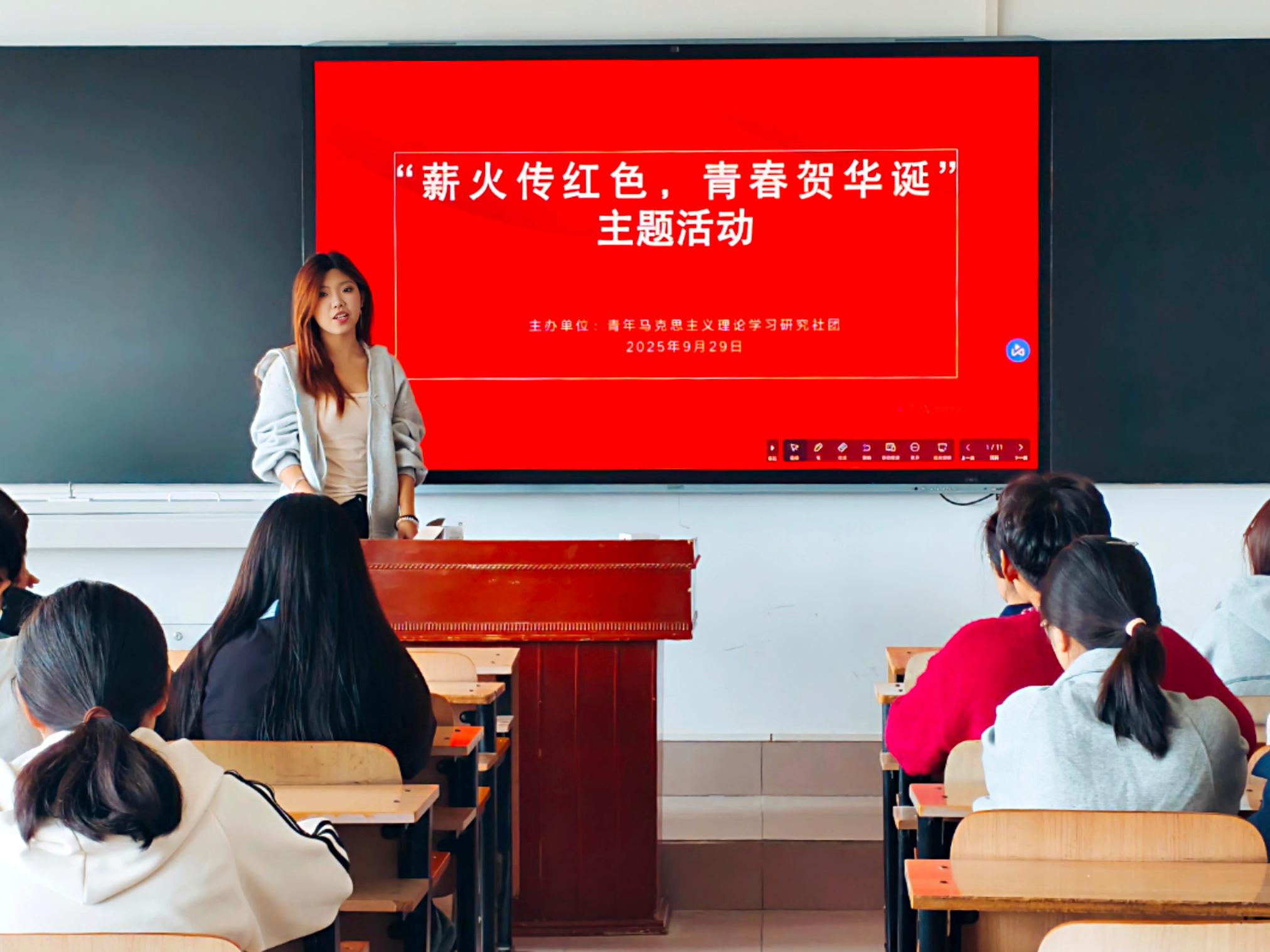 本网讯(通讯员 余正道 裴天青)为庆祝中华人民共和国成立76周年,9月29日,青年马克思主义理论学习研究社团在逸夫楼N407教室举办“薪火传红色,青春贺华诞”活动,带领同学们沉浸式回顾中国共产党团结带领中国人民不懈奋斗的光辉历程。