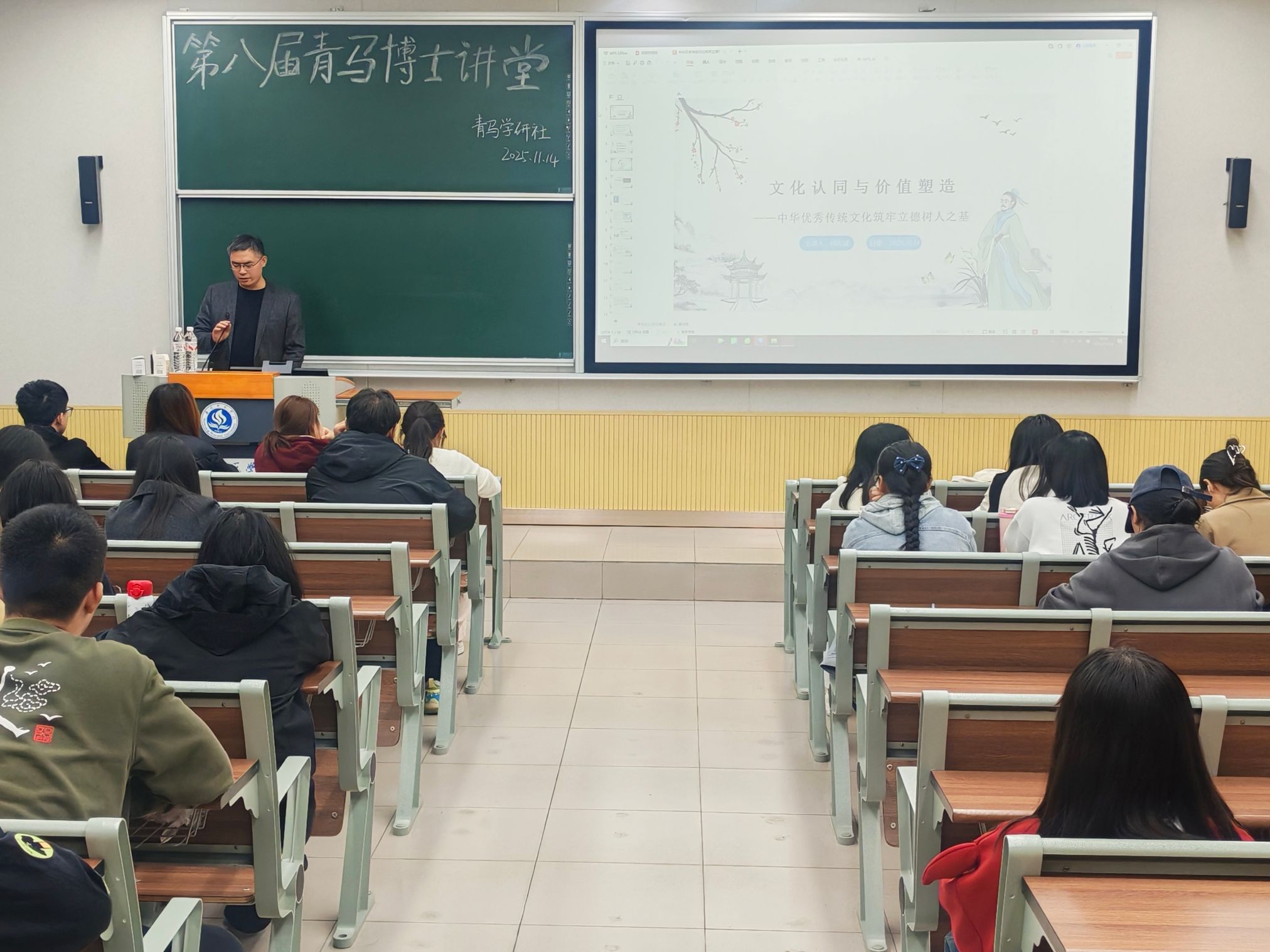 本网讯(通讯员 余正道 李美萱)11月14日,南阳师范学院青年马克思主义理论学习研究社团于逸夫楼C107教室举办“文化认同与价值塑造——中华优秀传统文化筑牢立德树人之基”博士讲堂活动。活动特邀马克思主义学院周志诚老师担任主讲人。