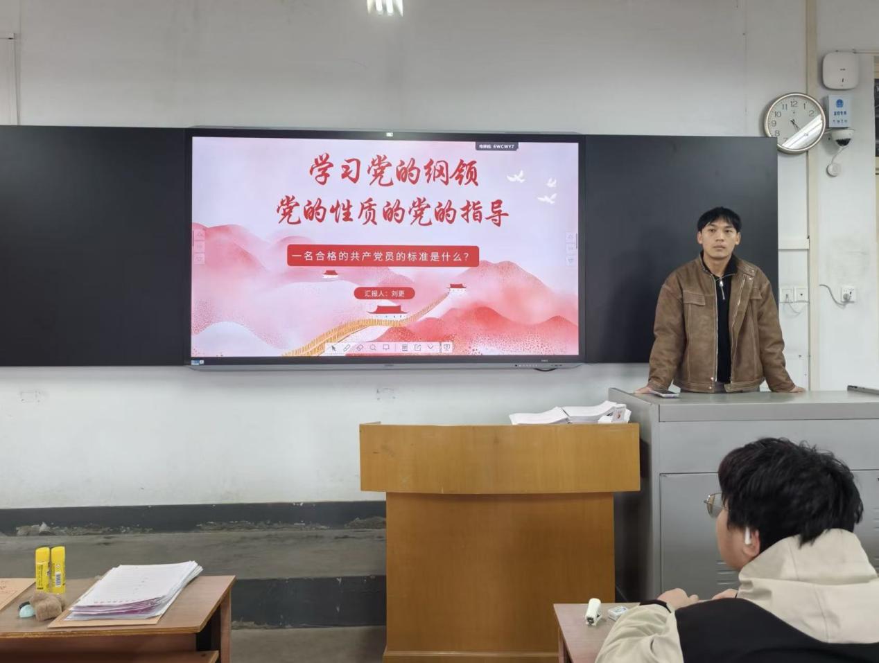 培训会上,党支部书记刘更系统阐述了党的创新理论,要求学员们筑牢信仰之基。随后,他强调入党积极分子的思想觉悟不仅体现在理论认知上,更要落实在学习生活、服务奉献的点滴行动中。最后,党支部书记刘更希望学员们能做到理论学习与实践锻炼相结合。