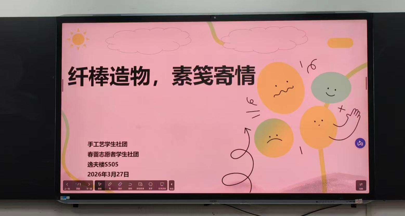 本网讯(通讯员 来会会 刘音/文 刘莹/图)为丰富校园文化生活,弘扬志愿服务精神,促进社团成员间的交流协作,3月27日,手工艺学生社团和春蕾志愿者学生社团于逸夫楼S505教室联合开展“纤棒造物,素笺寄情”公益手作活动。本次活动由社团负责人刘明媛主持,部分社团成员参加。