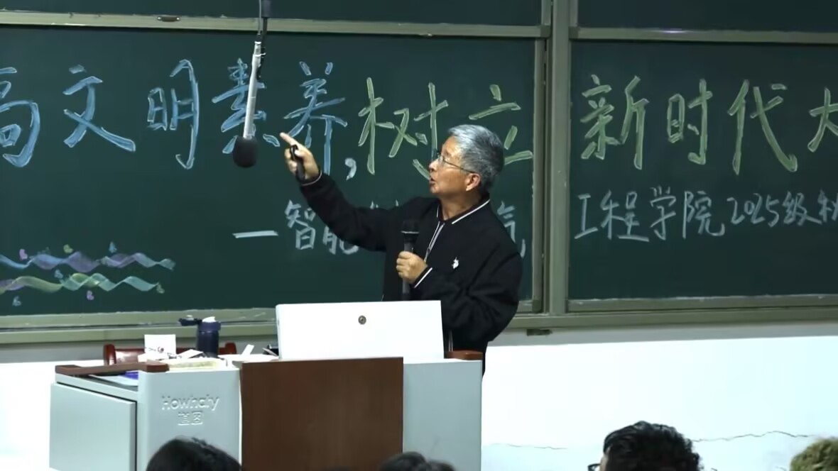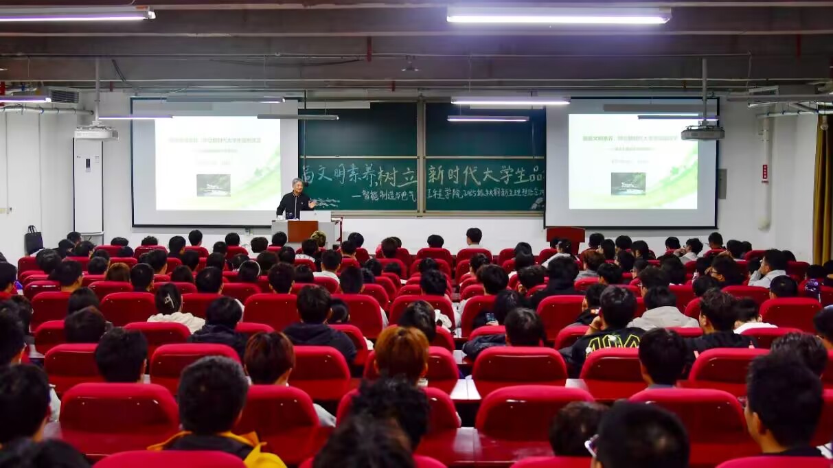 本网讯(通讯员 朱梦茹 文/图)为深入贯彻落实立德树人根本任务,引导青年学子坚定理想信念、提升文明素养。10月16日,智能制造与电气工程学院于实训楼4101开展“提高文明素养,树立大学生品格风范”理想信念报告。本次报告由我校退休教师刘长运教授主讲,25级全体学生参加。