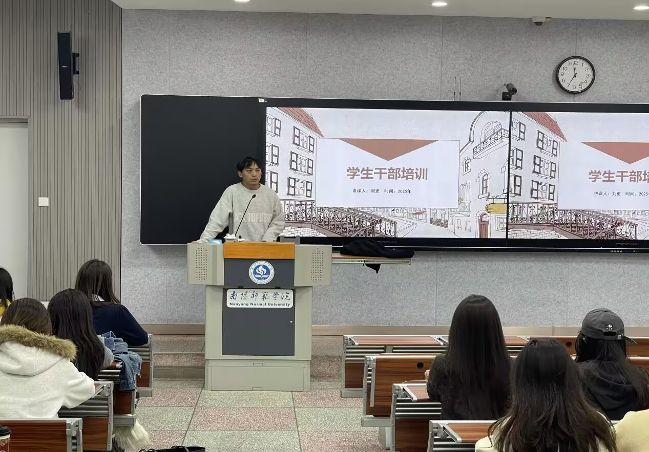 本网讯(通讯员 胡欣妍/文 汪师羽/图)为全面提升学生干部的综合素养,促进学生干部更快、更好地投入学生干部的工作。11月1日,新闻与传播学院在综合楼201教室开展学生干部培训,本次培训由刘更老师主讲,学生会干部和25级班委参与。
