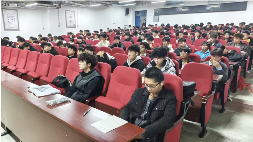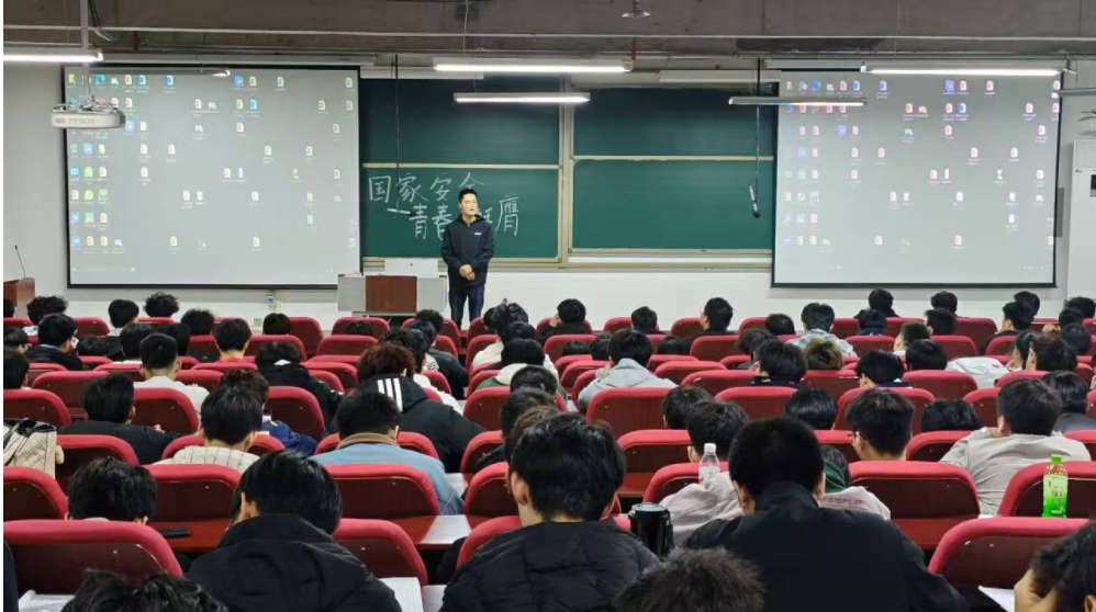 本网讯(通讯员 白益玮 文/图)为进一步增强同学们法治观念,提升安全防范能力,营造文明守法的校园氛围,11月16日,智能制造与电气工程学院于实训楼4103教室组织开展“增强法律意识,筑牢安全屏障”主题班会。本次班会由辅导员魏欢歌主讲,2025级全体同学参加。
