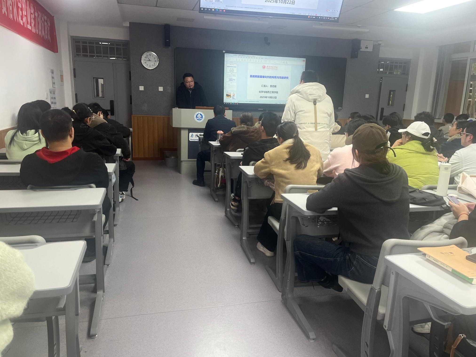 10月22日,我院“2025年度博士论坛”第一期学术报告会在博睿楼215顺利举行。董俭朋博士作了题为“氮硫铜簇基催化剂的构筑与性能研究”的学术报告。学院副院长程新峰、教师代表、研究生及部分本科生参加了此次报告会。报告会由程新峰主持。