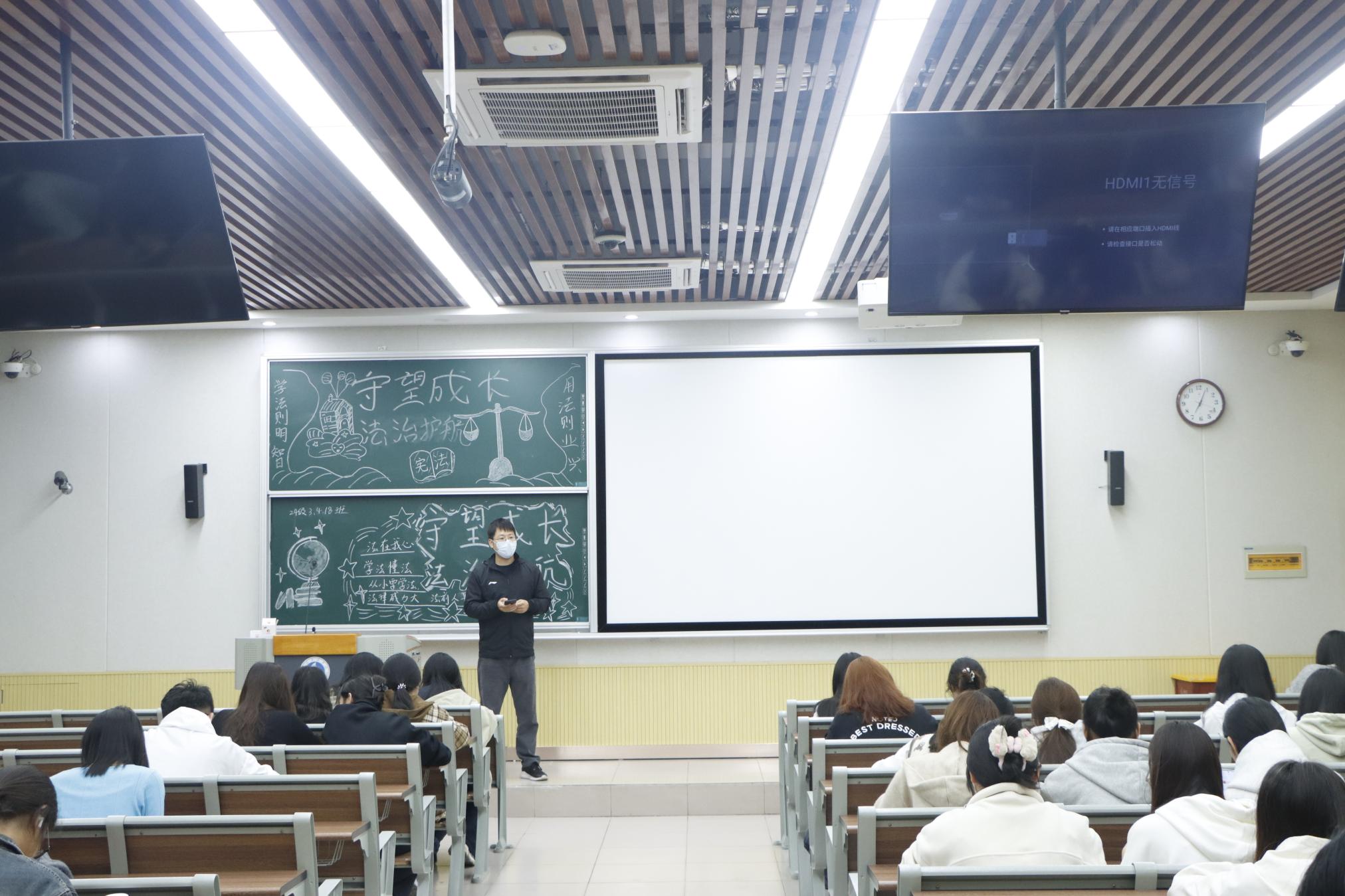 本网讯(通讯员 丁好/文 陈莹/图)为引导学生树立正确的法治观念,增强学生的自我保护能力,10月8日,经济与管理学院于逸夫楼C101、C102、C103教室召开“守望成长,法治护航”主题班会。本次班会由学院24级辅导员孙阳成主持,24级全体同学参加。