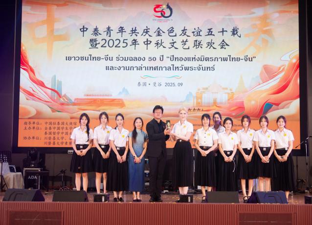 本网讯(杨紫玉/文 全泰学联媒体部/图)9月25日,“中泰青年共庆金色友谊五十载暨2025年中秋文艺联欢会”在泰国川登喜大学举办。联欢会由中国驻泰国大使馆指导、全泰中国学生学者联合会等主办,中国驻泰国大使张建卫偕夫人及教育参赞许兰出席,500余名中泰青年与嘉宾齐聚。活动以“青年、传统、友谊”为主题,通过音乐、舞蹈、武术等形式,助力构建中泰命运共同体。张建卫大使肯定了中泰关系,勉励青年传承友谊。