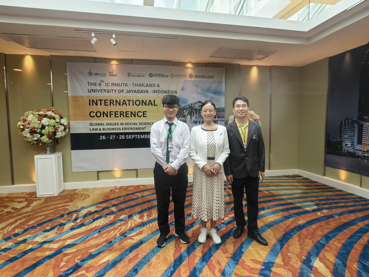 本网讯(王俊龙/文Peekratai,申俊玲/图)9月27日,泰国曼谷皇家理工大学举办了主题为“社会科学、法律与商业环境领域的全球性议题”国际学术研讨会,参会高校分别来自泰国、印度尼西亚等国。我校经济与管理学院副院长申俊玲教授、国际教育学院王广琦老师和工商管理专业在泰学生代表王俊龙应邀出席。会上曼谷皇家理工大学校长Assoc.Pichai Janmanee,ph.D教授、曼谷皇家理工大学国际学院院长Supaphorn Akkapin,ph.D教授分别致辞。