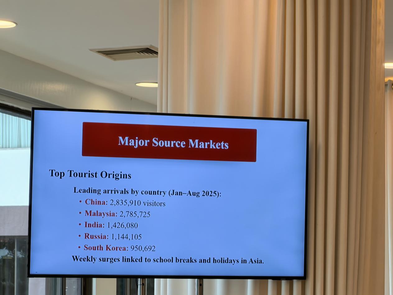 上午的主题论坛讨论了“Bankruptcy Law,Investment Climate,and Sustainable Tourism-Business Pathways”。Supaphorn Akkapin教授在《Thailand’s Tourism-Global Reputation》报告中分析了泰国旅游市场2025年1-8月份的主要客源,其中中国访客达2835910人,位居第一。下午的分论坛从全球社会科学、法律问题、全球商业环境等三个方面分别展开讨论,分析当前存在的问题并就其解决策略及未来趋势进行了深入研讨。