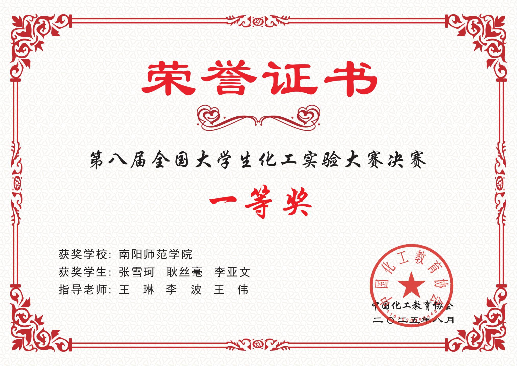2025年第八届全国大学生化工实验大赛决赛获国家级一等奖