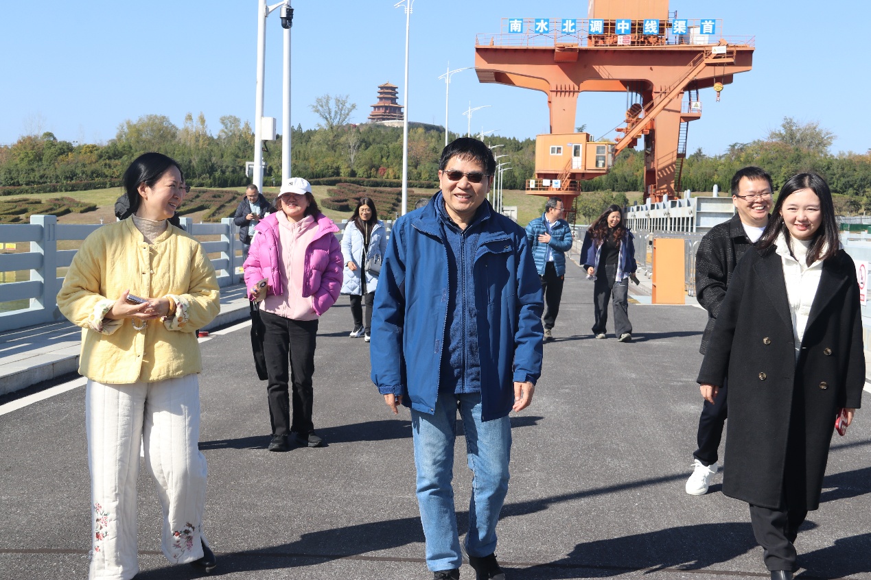 考察团首站抵达丹江口水库大坝,在南水北调中线水源有限责任公司相关负责人的详细讲解下,系统了解大坝建设历程、蓄水调度机制及对南水北调中线工程的核心支撑作用,实地察看大坝运行状况与库区水位调控情况,了解中线工程在水资源优化配置中的战略意义。