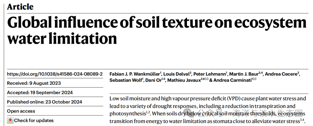 这篇《Nature》提醒我们,在应对气候变化的挑战时,不仅要抬头看天(大气),也要低头看地(土壤)。理解并尊重这片孕育生命的基质其内在的物理规律,或许是我们守护绿水青山、构建气候韧性的智慧起点。