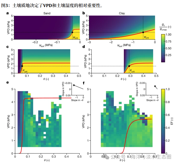 4.对未来气候的调制作用:未来VPD的普遍升高,会使得所有生态系统的水限制更早发生(临界阈值升高)。但这种影响的程度被土壤质地所调制: