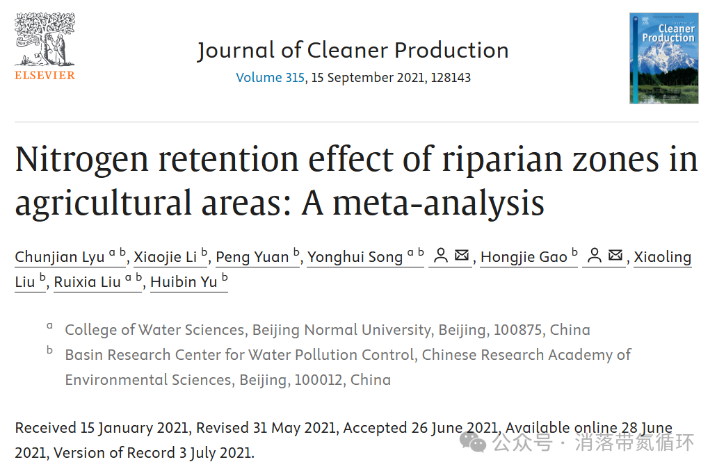 本研究通过Meta分析系统整合近40年来关于农业区河岸带氮去除的全球数据,定量揭示了不同介质中氮滞留规律及主要控制因子,弥补了以往研究片段化、缺乏综合定量评估的不足。结果明确了10-15 m缓冲带即可实现较高氮削减率,为农业面源污染治理提供了科学依据。同时揭示了植被类型、气候与土壤特性对反硝化、植物吸收和N₂O排放的综合影响,为生态修复和温室气体减排提供理论支撑。该研究不仅深化了对河岸带氮循环机制的理解,也为流域尺度的农业环境管理、缓冲带设计与长期氮污染控制提供了可量化的指导框架。