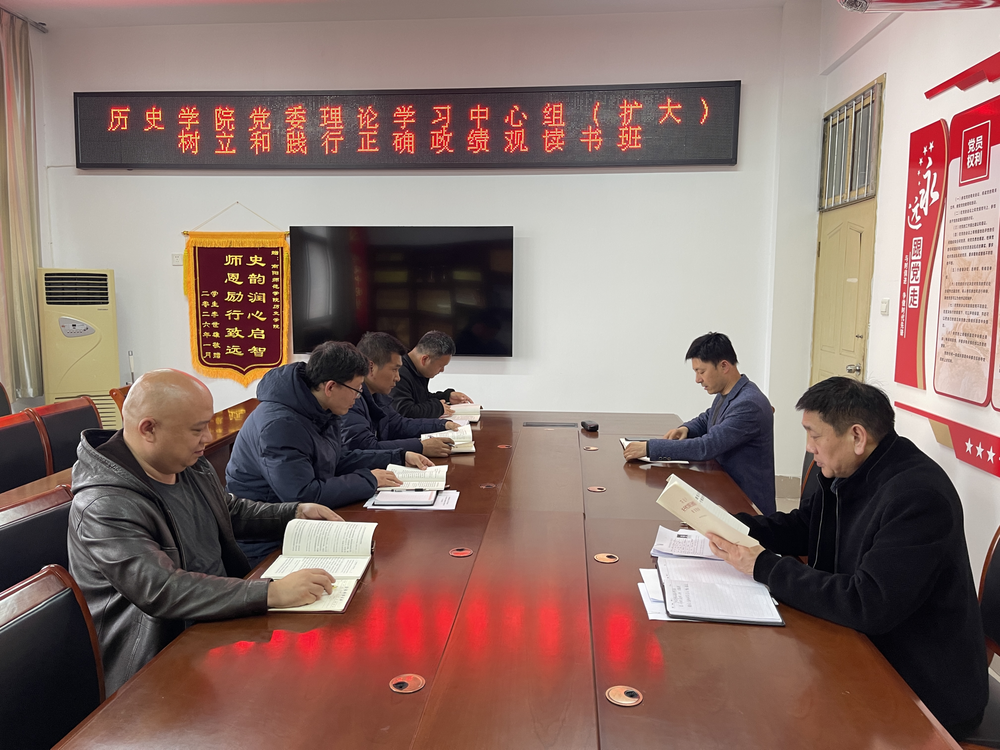 本网讯(通讯员 潘全志 李宇秋/文 余峰/图)为深入学习贯彻习近平总书记关于树立和践行正确政绩观的重要论述,加强学院领导班子思想政治建设,3月26日上午,历史学院于逸夫教学楼C606会议室召开党委理论学习中心组(扩大)专题读书班。会议由历史学院院长高二旺主持,全体领导班子成员、理论学习中心组成员参加。