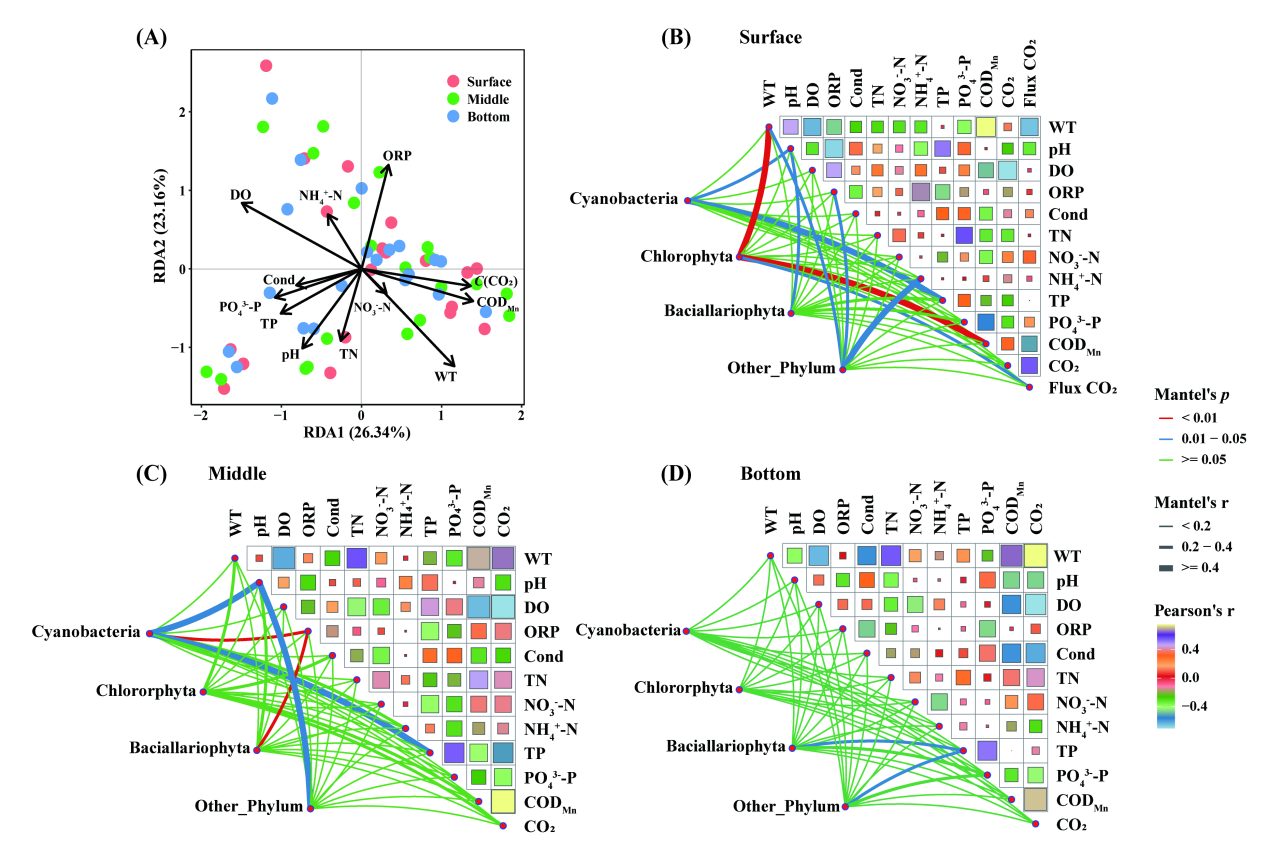 • WT, DO and CODMn drive phytoplankton and CO2 dynamics.