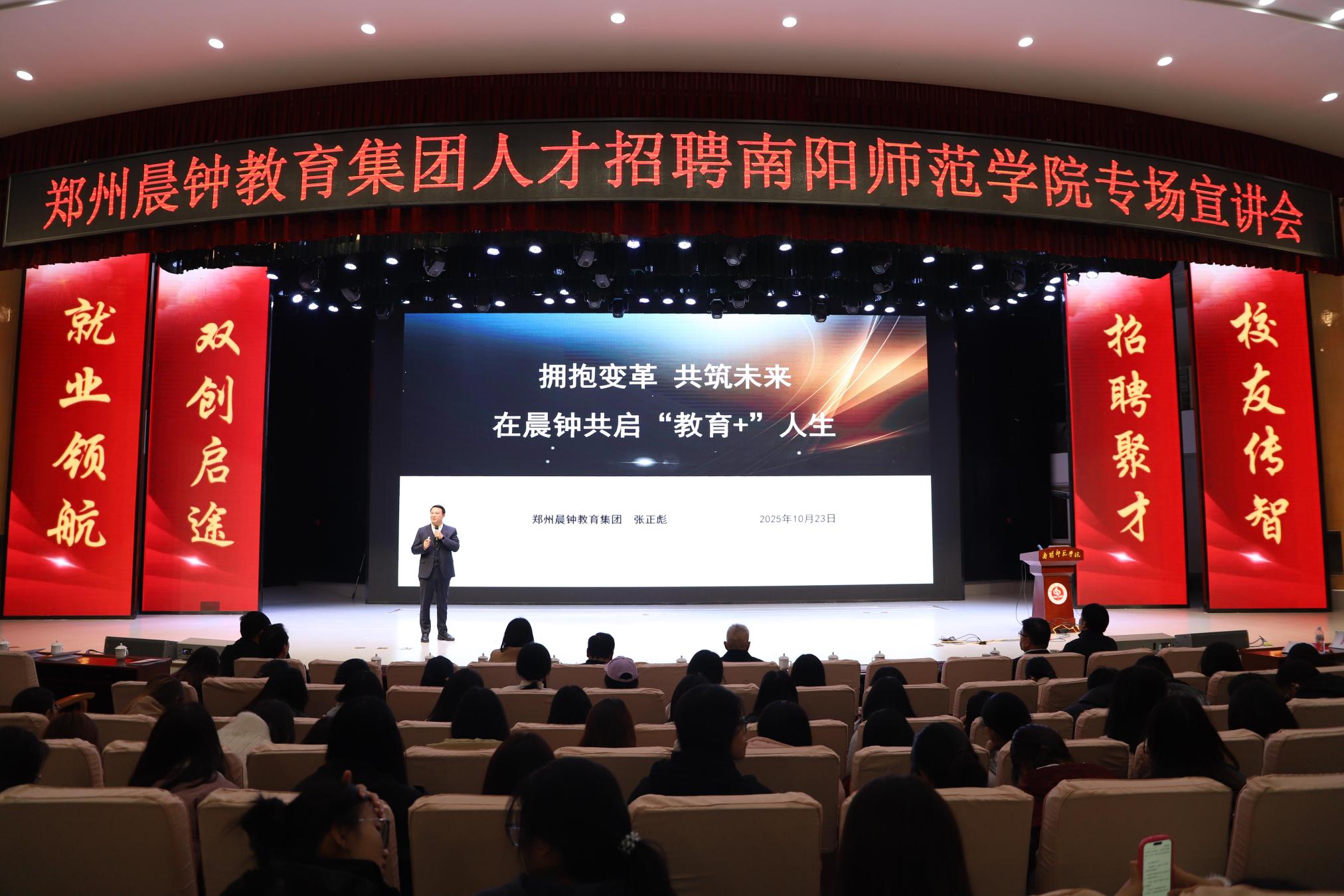 本网讯(通讯员 唐李静 黄煜婷/文 李梦珂/图)为精准对接高校毕业生就业创业需求,助力学子把握行业新趋势,10月23日,由创新创业学院主办,数学与统计学院、智能制造与电气工程学院、物理与电子工程学院联合承办的2025年第九期就业创业大讲堂在中区音乐厅举行。本次宣讲由郑州晨钟教育集团党委书记朱玉峰,郑州晨钟教育集团纪委书记、郑州陈中实验学校总校执行校长、我校95级校友段立建,郑州陈中实验学校总校长张正彪三位老师主讲。