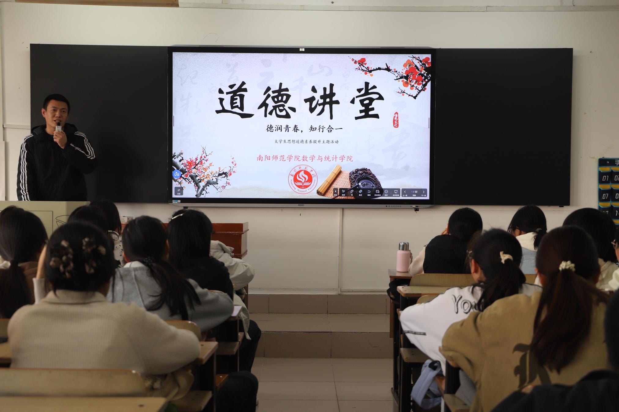 周正航围绕“德润青春,知行合一”展开阐述,结合大学生日常生活场景,分享了多个真实案例,深入剖析了青年学子在成长过程中可能面临的道德抉择与困惑,引导同学们充分认识到个人品德绝非孤立的修养问题,而是关乎人生航向的 “压舱石”,更是推动社会文明进步的 “微力量”。周正航呼吁全体学予以此次活动为契机,将道德认知切实转化为日常行动 —— 在学习科研中坚守诚信底线,在人际交往中秉持友善之心,在社会实践中扛起责任担当,真正做到“知行合一”,让道德之花在青春岁月中绽放。 数学与统计学院团委