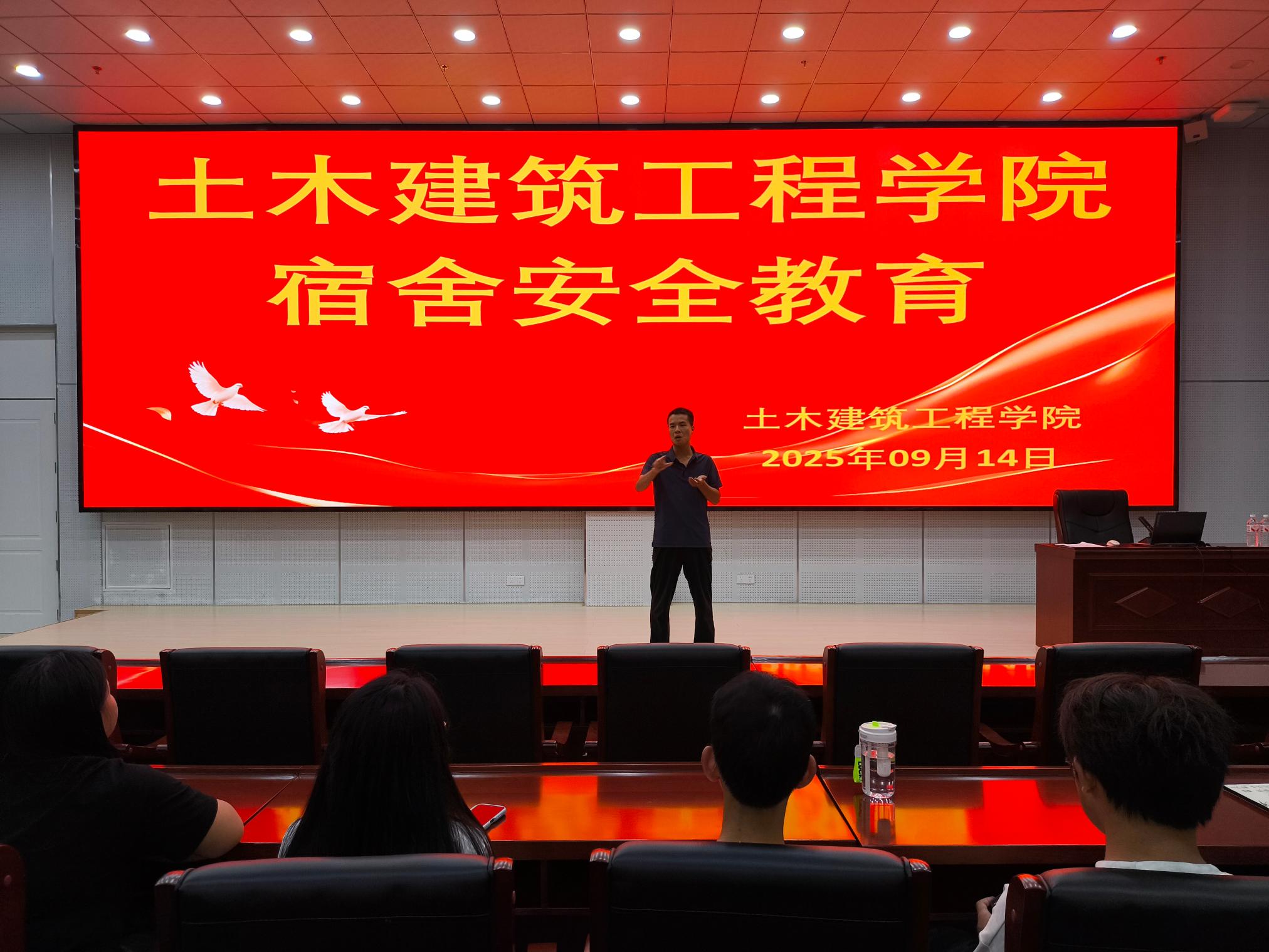 本网讯(通讯员 王继贤/图文)为进一步加强学生宿舍管理,增强学生的安全意识和自我防范能力,土木建筑工程学院于9月14日晚在留学生公寓学术报告厅组织开展了“宿舍安全教育”主题班会。本次会议由辅导员张永旺主持,25级全体学生参与。
