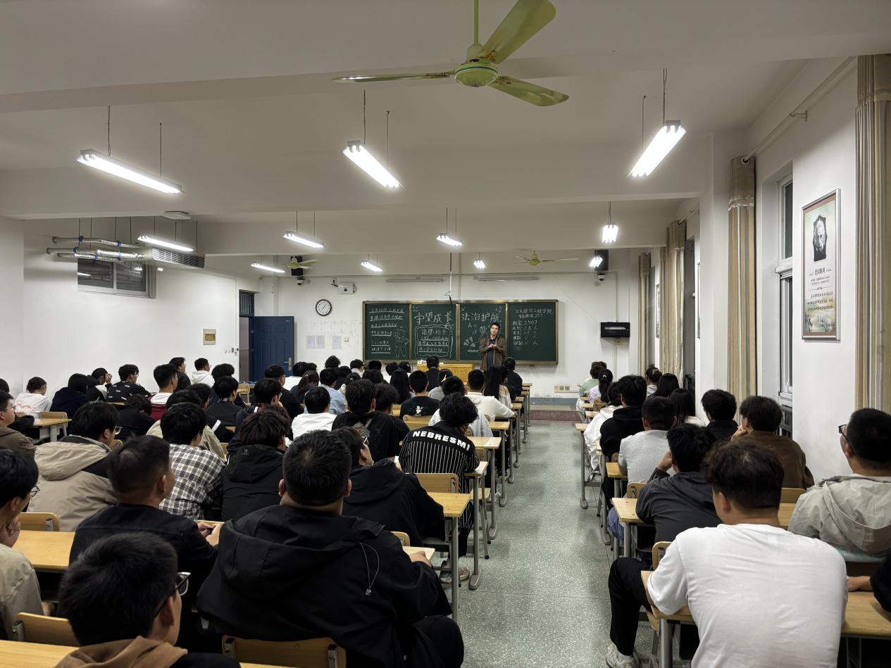 本网讯(通讯员 李佳素/图 王天昊/文)为深入贯彻法治理念,切实助力学生扣好“人生第一粒法治扣子”,土木建筑工程学院于10月8日晚在实训楼2505教室开展“守望成长,法治护航”主题班会,本次班会由辅导员张永旺主持、25级全体学生参与。