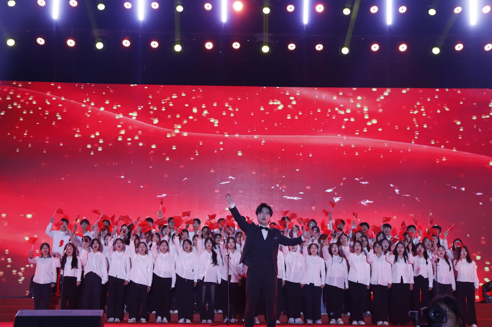 晚会分为《青春序曲·梦起卧龙》、《逐梦而行·光彩绽放》、《强国有我·共创未来》三个篇章。乐队表演《和声启程》震撼开场,层次丰富的敲击乐迅速将观众带入现场氛围,为晚会拉开序幕。《青春序曲·梦起卧龙》篇章中,舞蹈《鼓韵击节·汉宫鸣》以多变鼓点搭配柔美舞姿,尽显楚汉文化的大气雅韵;舞蹈《舞动的青春》青春洋溢,舞动出南师学子们的蓬勃朝气;朗诵《山河磅礴,我们正青春》声线铿锵,传递青年担当,致敬家国情怀与青春理想;歌曲《心向朝阳》明朗昂扬,唱出新时代青年追逐梦想的热忱,带动全场合唱;《逐梦而行·光彩绽放》篇章中,舞蹈《大医仲景》用舞姿勾勒情境,演绎“医圣”张仲景的那份济世仁心;演唱《推开世界的门》用细腻温柔的嗓音,还原故乡亲友温暖的守望,以及那份珍藏在心底的柔软牵挂;拉丁舞《燃》凭借动感的节奏与张力十足的动作,点燃青春激情;舞蹈《石榴籽的约定》热情奔放,旋转的裙摆与欢快的鼓点共鸣,带大家领略异域豪情。《强国有我·共创未来》篇章中,朗诵《从南师出发》诉说学子们自踏上大学征程起,对未来坚定探索、永不止步的信念;歌曲《我爱你中国》歌声炽热有力,唤醒血脉深处的澎湃情感;歌伴舞《再一次出发》旋律昂扬,激励青年学子以奋进之姿踏上新征程;合唱《歌唱祖国》慷慨激昂,充满着对祖国繁荣富强的自豪与祝福。整场晚会中,两个校区的同学们挥舞着荧光棒,气氛热烈,通过跨屏互动对唱军歌,实现了心与心的紧紧相连。