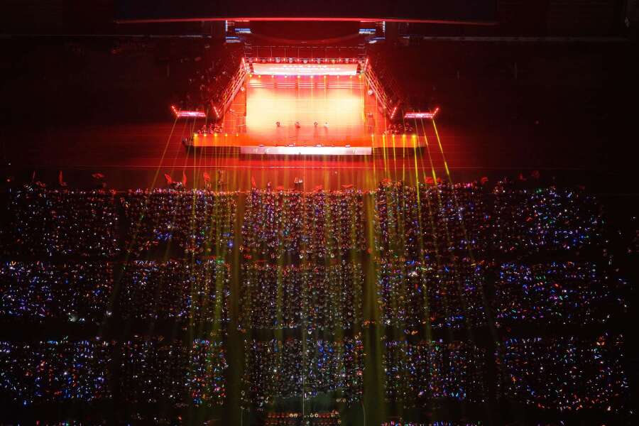 “强国有我·共创未来”篇章中,朗诵《从南师出发》诉说学子们自踏上大学征程起,对未来坚定探索、永不止步的信念;歌曲《我爱你中国》歌声炽热有力,唤醒血脉深处的澎湃情感;歌伴舞《再一次出发》旋律昂扬,激励青年学子以奋进之姿踏上新征程;合唱《歌唱祖国》慷慨激昂,充满着对祖国繁荣富强的自豪与祝福。整场晚会中,两个校区的同学们挥舞着荧光棒,气氛热烈,通过跨屏互动对唱军歌,展现出南师青年学子的蓬勃朝气。(刘潇潇 杨眉)