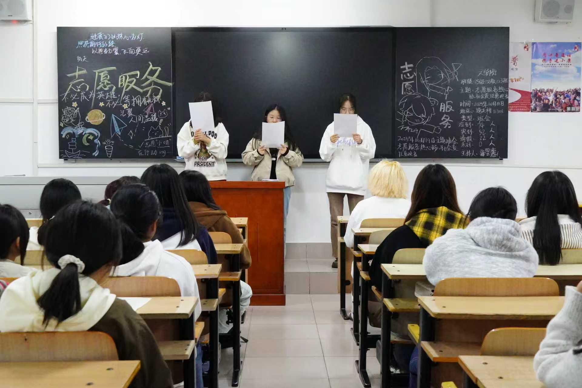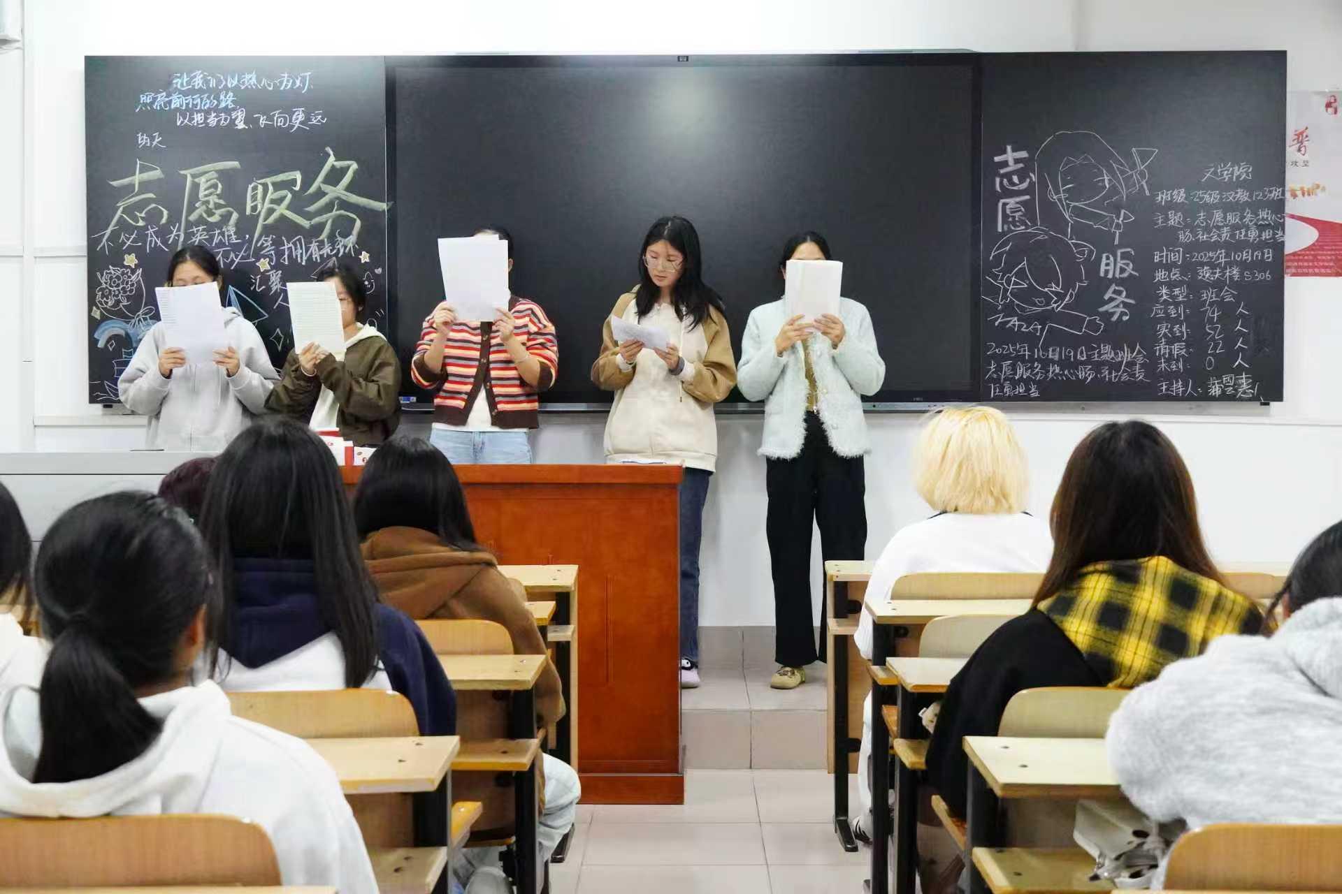 本网讯(通讯员 秦婧妤 闫玉涵/文 陈佳颖/图)为激发同学们的志愿服务热情,提升社会责任感,10月19日晚,文学院在逸夫教学楼S307教室开展“志愿服务热心肠,社会责任勇担当”主题班会,本次班会由2025级学生辅导员田裕心主持,2025级全体学生参加。