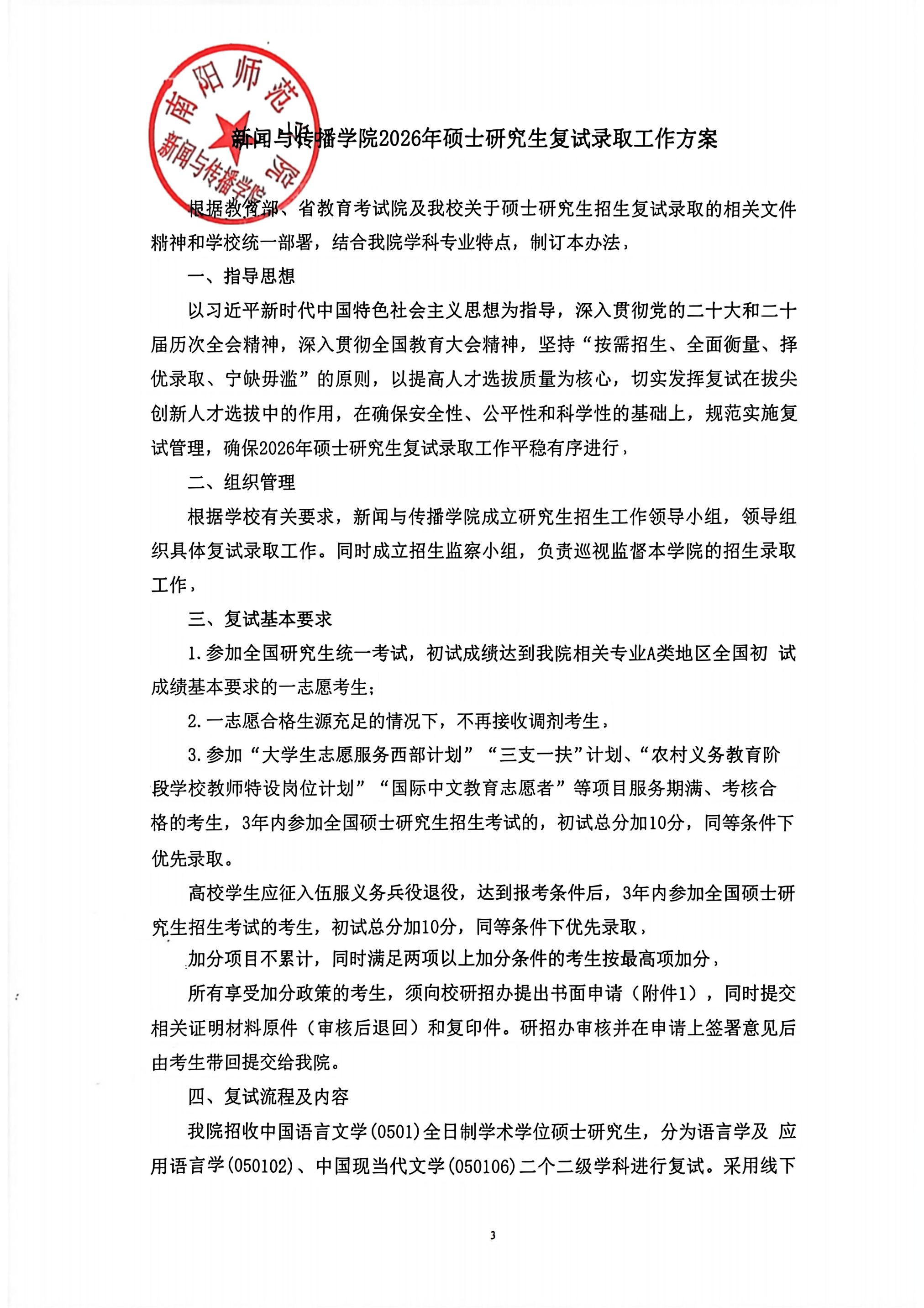 新闻与传播学院2026年硕士研究生复试录取工作方案