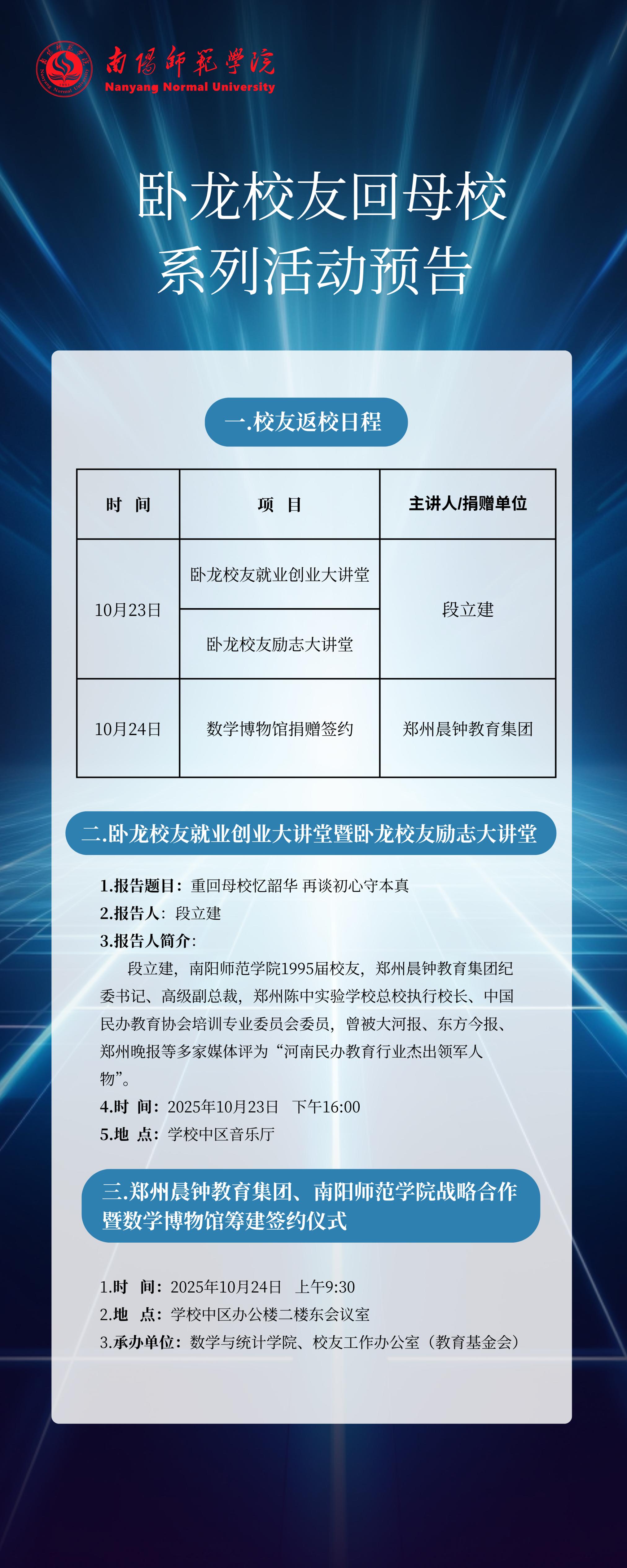 卧龙校友回母校系列活动预告