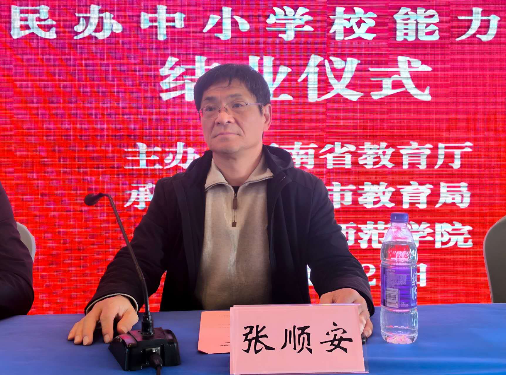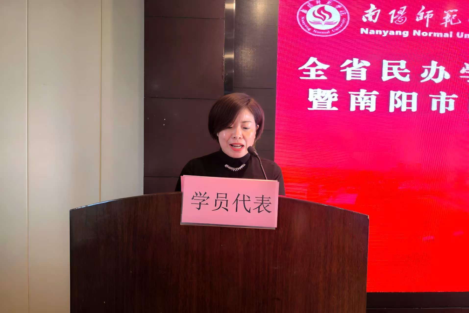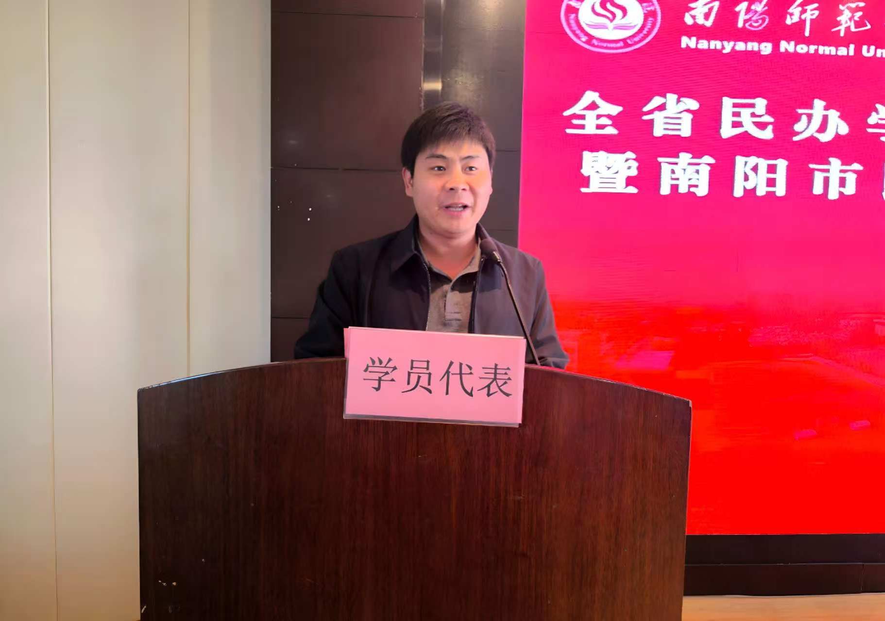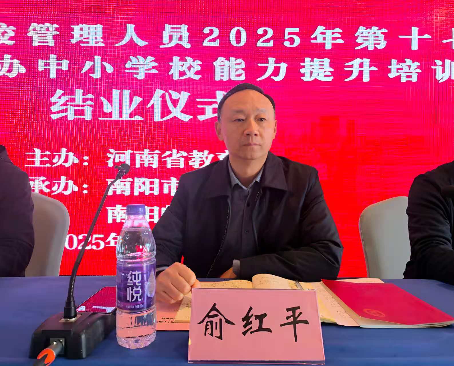 南阳市教育局民办教育管理科科长俞红平作总结讲话。他充分肯定了本次培训的成效:“课程设计精准对接民办学校需求,理论与实践结合紧密,学员们的学习热情高涨、收获颇丰。”他鼓励大家:“以此次培训为新起点,把政策理解转化为行动自觉,把管理知识转化为办学实效,在规范中提质,在创新中发展,为河南省民办教育高质量发展贡献力量。”