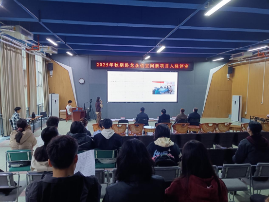 本网讯(通讯员孔祥雯文/图)11月7日上午,2025年秋期卧龙众创空间新项目入驻评审活动在实训楼4203路演教室成功举办。南阳市大众创业导师郭勇、校团委实践创新部部长杨眉等担任评委。