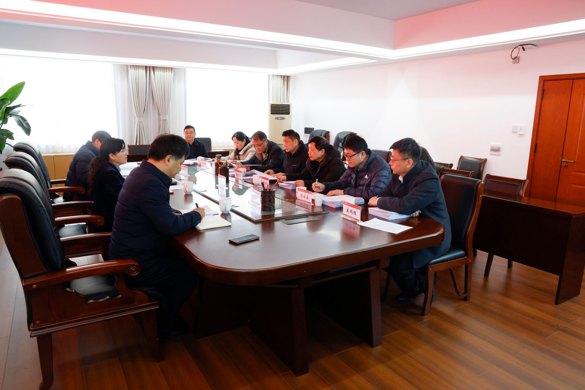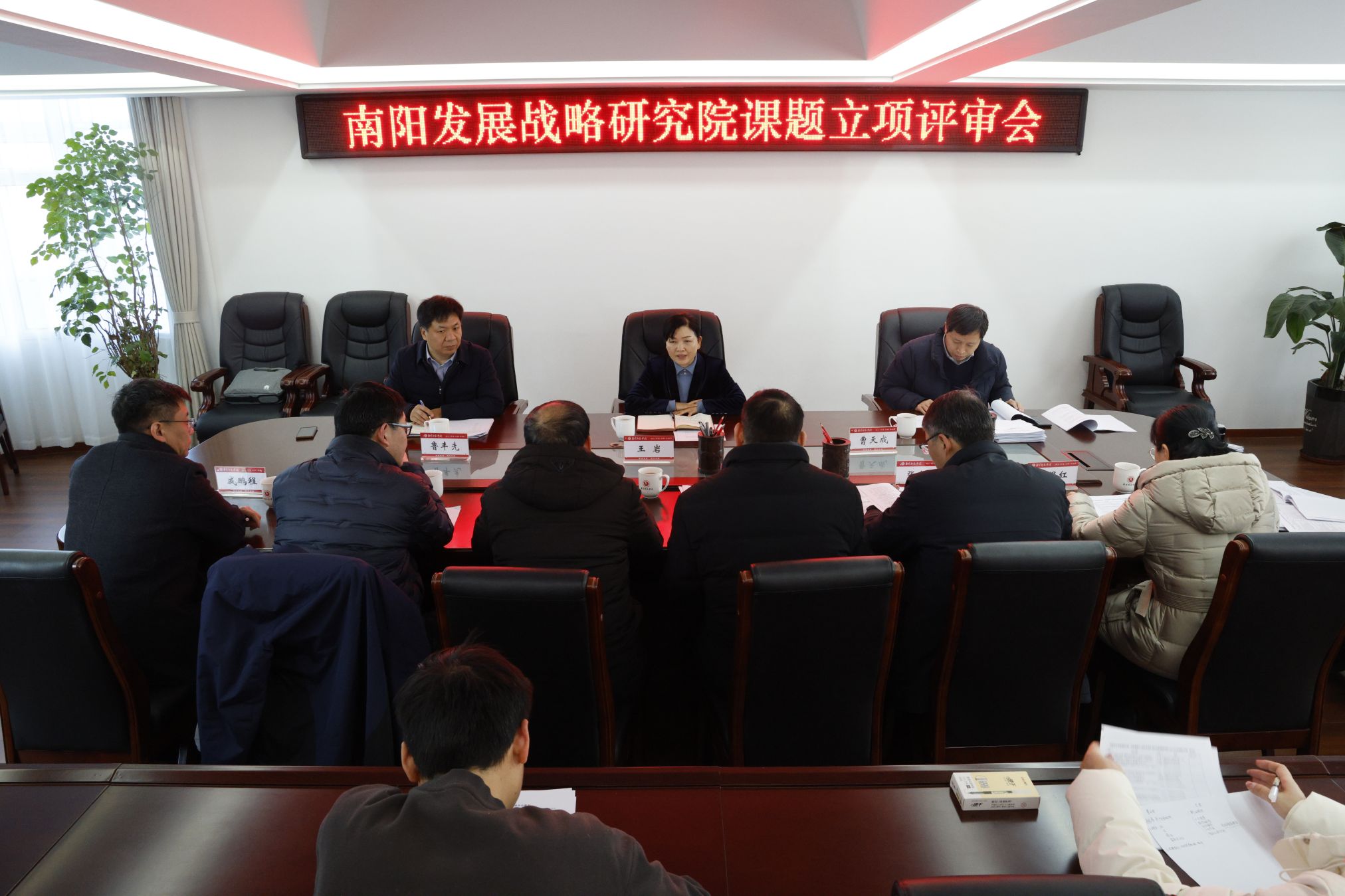 本网讯(通讯员 江淑洁)1月22日上午,我院2026年课题立项评审会在中区办公楼四楼西会议室举行,评审专家组由来自不同学科的8位专家组成,副校长王岩出席,南阳发展战略研究院院长鲁丰先主持,研究院相关同志参加评审会。