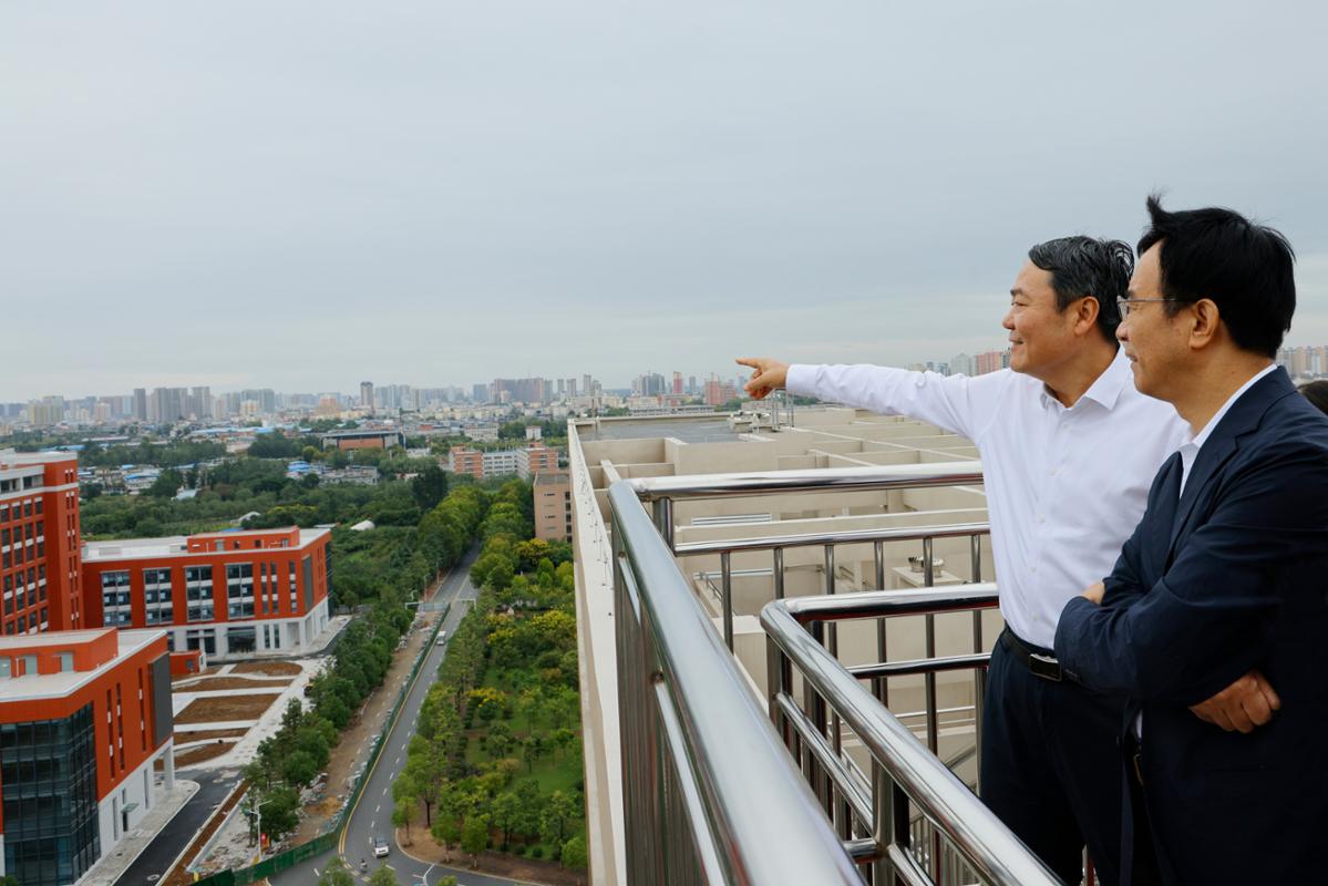 本网讯(王冰/文 胡新悦 孟翔/图)9月17日上午,南阳市市长路红卫带队到我校调研指导工作。副市长阿颖,市政协副主席、市教育局党组书记、局长杨文普,市人民政府党组成员、秘书长沈俊年,市委市政府督查局局长王雨,市政府副秘书长李菡,市自然资源和规划局局长皇甫光宇,卧龙区委书记吕志刚等参加调研。校党委书记张宝锋、校长罗永松、相关部门负责同志陪同调研。