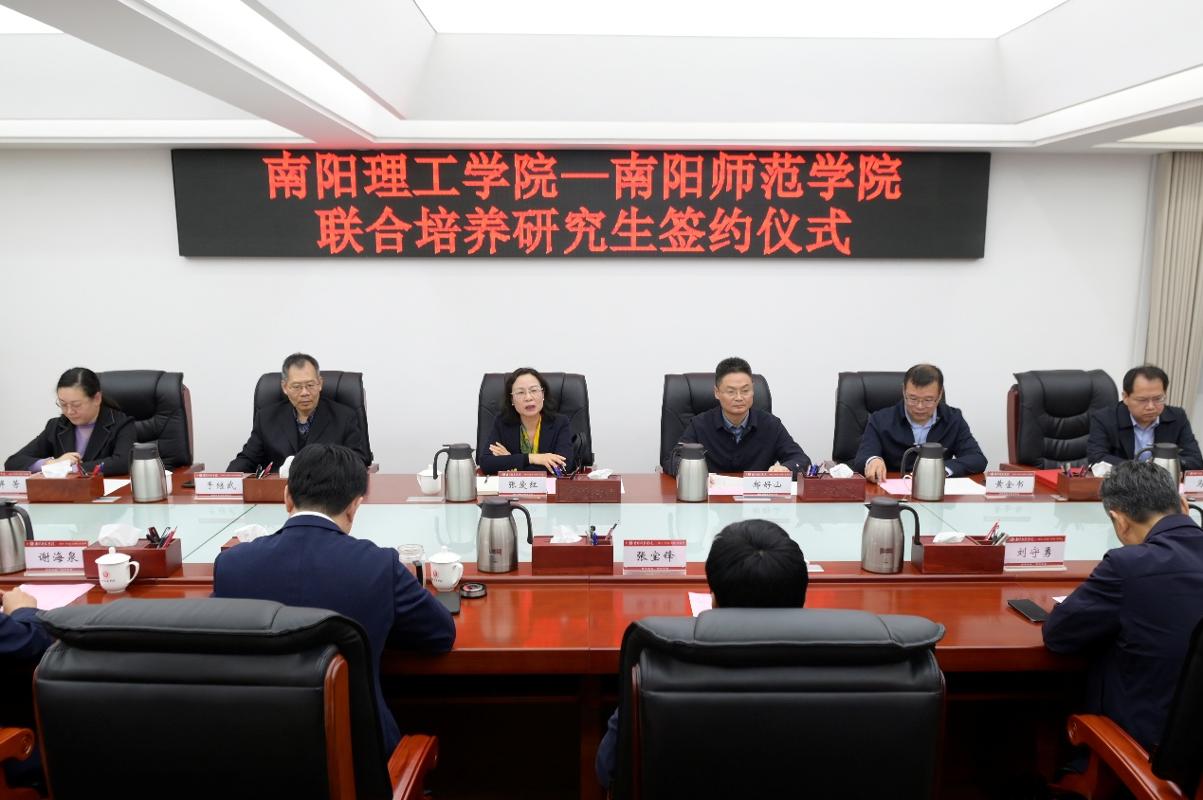 张爱红介绍了南阳理工学院“亲近产业、面向应用、强化实践、凸显能力”的办学原则,分享了学校在产教融合、校企合作、应用型人才培养等方面的特色经验,并重点阐述了此次联合培养硕士研究生的合作愿景。张爱红表示,南阳师范学院在学科建设、研究生教育等领域积累了深厚底蕴和丰富经验,此次合作是南阳理工学院提升办学层次、推进硕士学位授权单位建设的重要举措,期待双方以联合培养为起点,在课程共建、导师聘任、科研项目协同攻关等方面开展全方位合作,共同探索地方高校研究生教育创新发展路径,为两校高质量发展注入新动能。