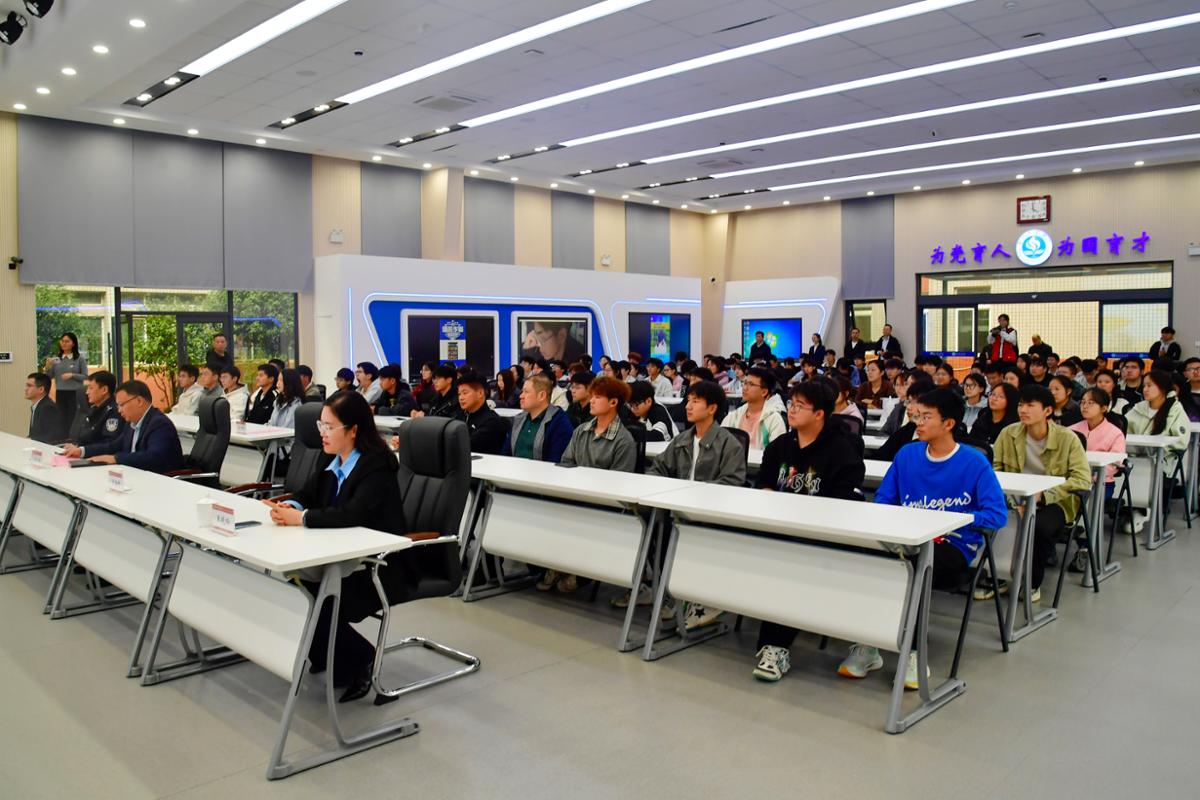 中国人民银行南阳市分行副行长王海彬致辞。中国银行河南省分行内控与法律合规部资深经理李翔开展专题宣讲,为师生详解犯罪特点与防范要点。(编审 张君明)