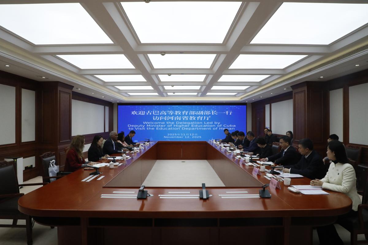 本网讯(通讯员 张起)11月12日,古巴高等教育部副部长莫德斯托·戈麦斯·克雷斯波一行访问河南省教育厅,我校受邀参加会见活动。河南省教育厅副厅长杨光、河南省教育厅对外合作与交流处和省委外办美洲大洋洲工作处负责人出席。校党委书记张宝锋、副校长熊新忠,国际交流合作处负责人参加会见。交流会由省教育厅对外合作与交流处处长王华星主持。