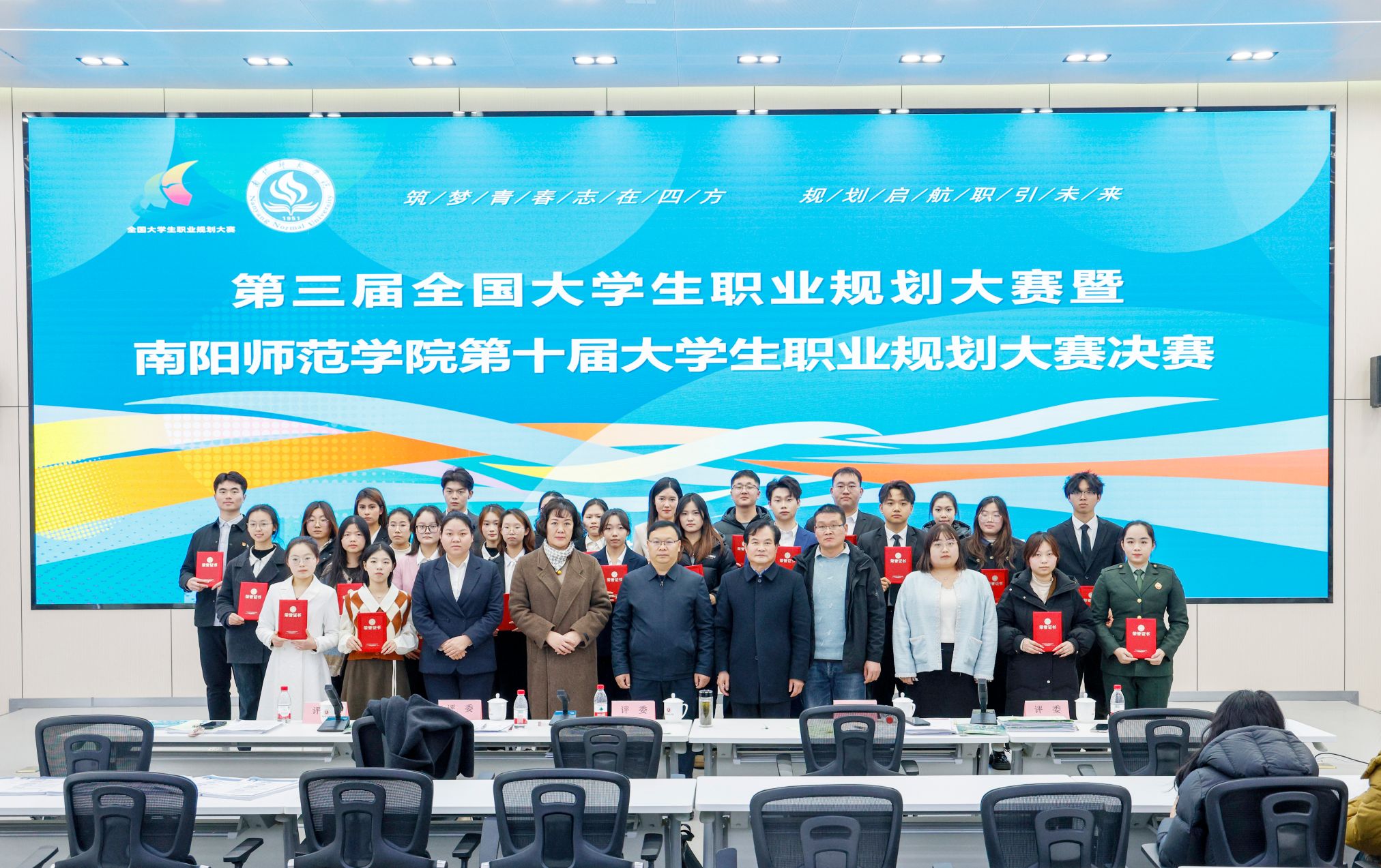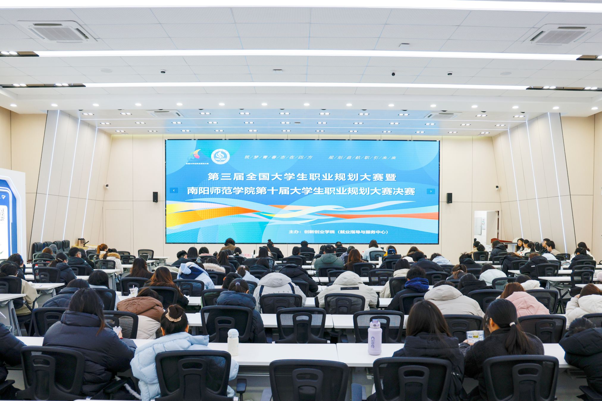 本网讯(程文亮/文 孙宏运/图)12月24-25日,第三届全国大学生职业规划大赛校赛暨南阳师范学院第十届大学生职业规划大赛决赛在科技大楼一楼报告厅举办。副校长冷枫出席,创新创业学院全体人员、各学院近200名师生代表到场观摩。决赛特邀省内多家重点企业人力资源负责人及高校就业创业指导专家担任评委。大赛自今年10月启动以来,得到全校学生的积极响应,累计吸引26000余人参与。经过学院初赛、学校复赛的层层选拔,最终共有38名选手晋级决赛。