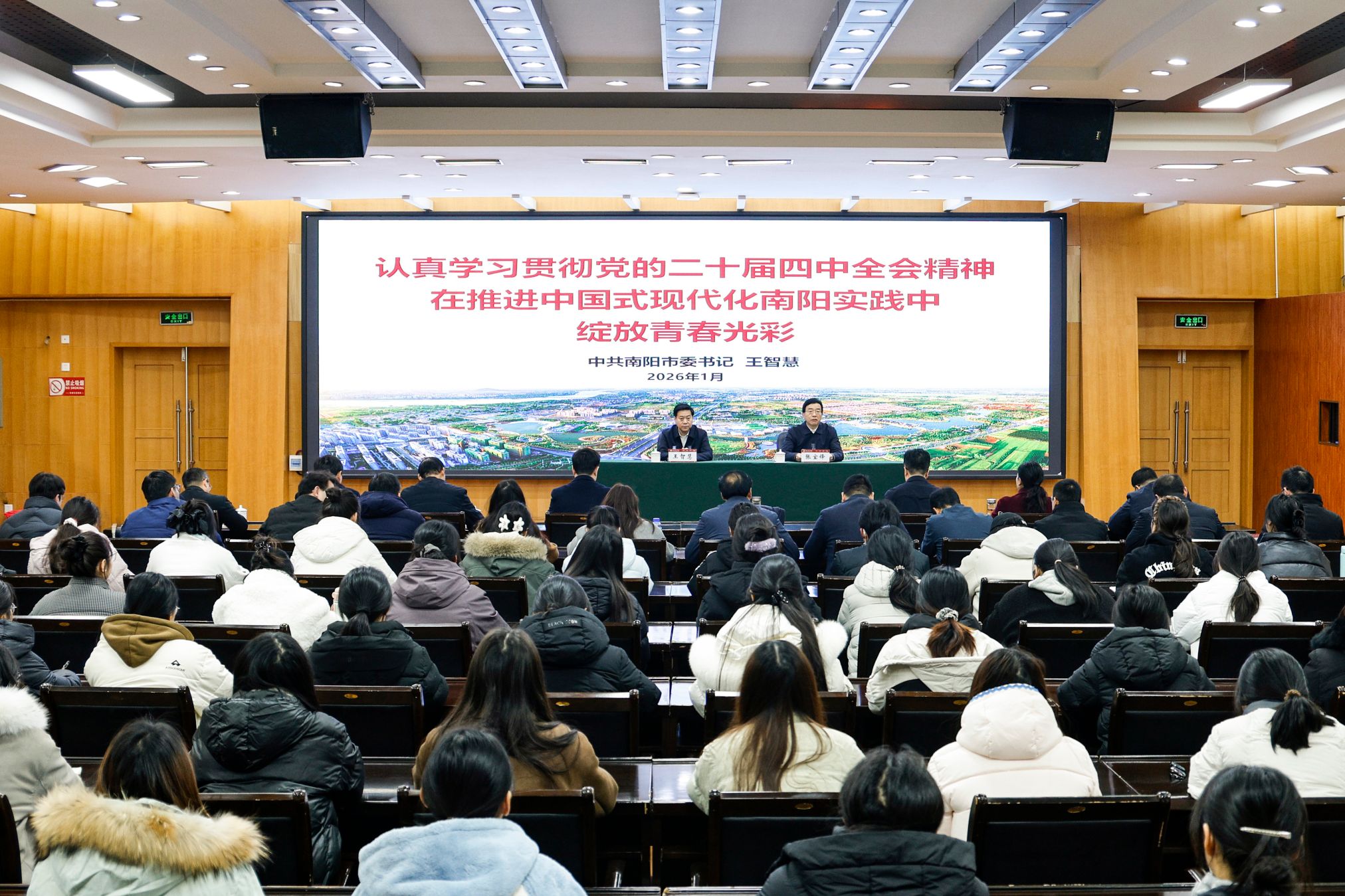 本网讯(王一鸣/文 闫丽颖 伍琦琪/图)1月8日上午,南阳市委书记王智慧在科技大楼三楼会议室为我校师生讲授题为《认真学习贯彻党的二十届四中全会精神,在推进中国式现代化南阳实践中绽放青春光彩》的思政课。市委常委、统战部部长范勇,我校全体校领导、党委办公室、院长办公室、马克思主义学院师生代表参加。校党委书记张宝锋主持。