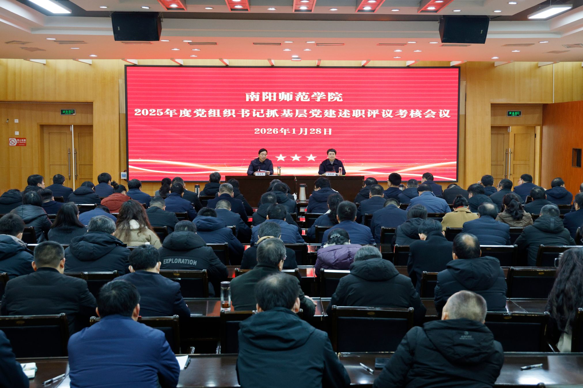 本网讯(李丹阳/文 孙宏运 王梁仪/图)为深入学习贯彻习近平新时代中国特色社会主义思想,全面落实党的二十大和二十届历次全会精神,压紧压实管党治党政治责任,推动基层党建与教育教学、科研创新深度融合,1月28日上午,我校在科技大楼三楼会议室召开2025年度党组织书记抓基层党建述职评议考核会议。校领导张宝锋、孟静雅、刘红林、刘守勇、熊新忠、王岩、谢海泉、刘金江、冷枫、姚伦广出席会议,全体正处级干部、主持工作的副处级干部,副处级单位主要负责人参加会议。会议由校党委副书记孟静雅主持。