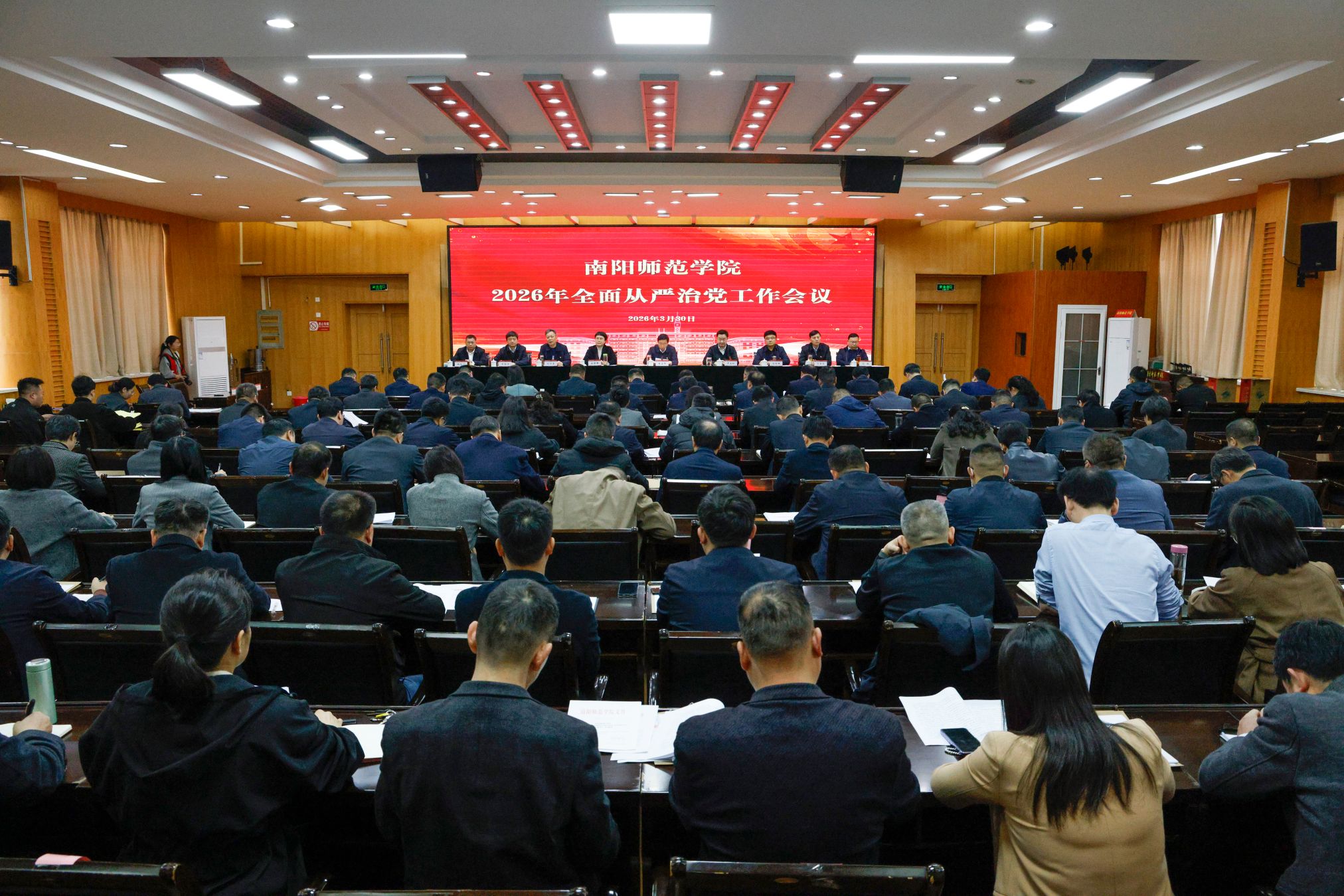 本网讯(史月婵/文 王梁仪 林冬梅/图)3月30日,我校2026年全面从严治党工作会议在科技大楼三楼会议室召开。在校校领导出席会议,全体正处级干部、副处级单位主要负责人参加会议。会议由校党委副书记孟静雅主持。