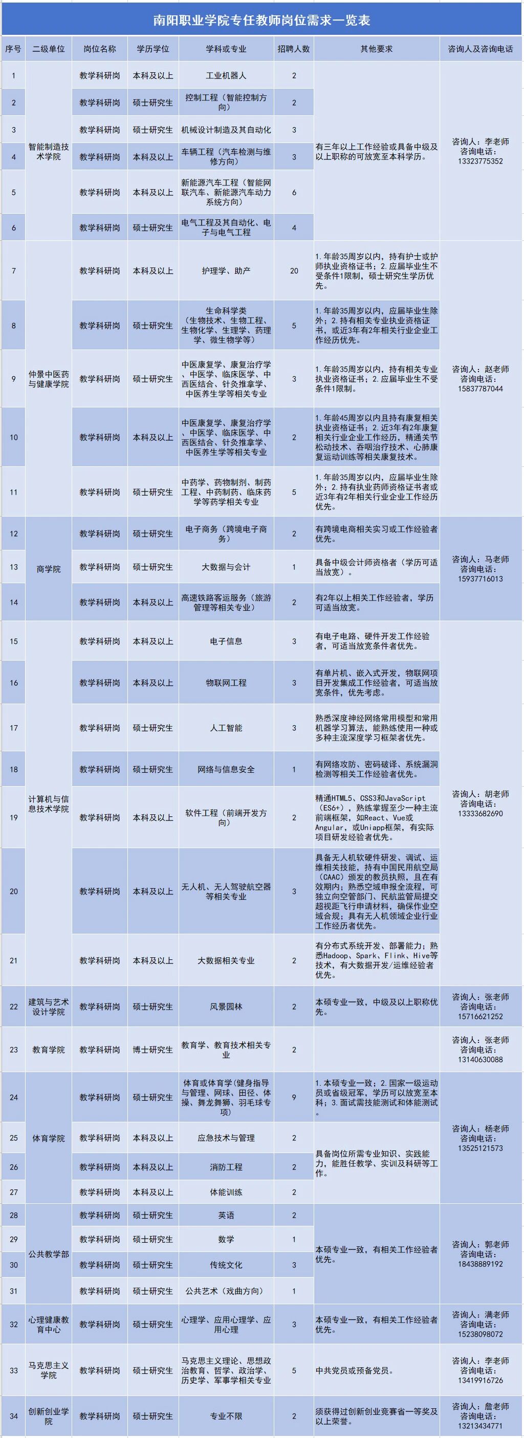 南阳职业学院立足豫西南沃土,深耕职业教育十四载,以 “建设高水平职业本科大学”为战略目标,锚定区域经济社会发展需求,在产教融合、科研创新、人才培养等领域成果斐然。为进一步夯实学科根基、强化管理效能、激发发展活力,学校面向海内外广揽英才,诚邀怀揣教育理想、兼具专业素养与创新精神的各界贤才加盟,与学校共赴新征程、共谱新篇章!