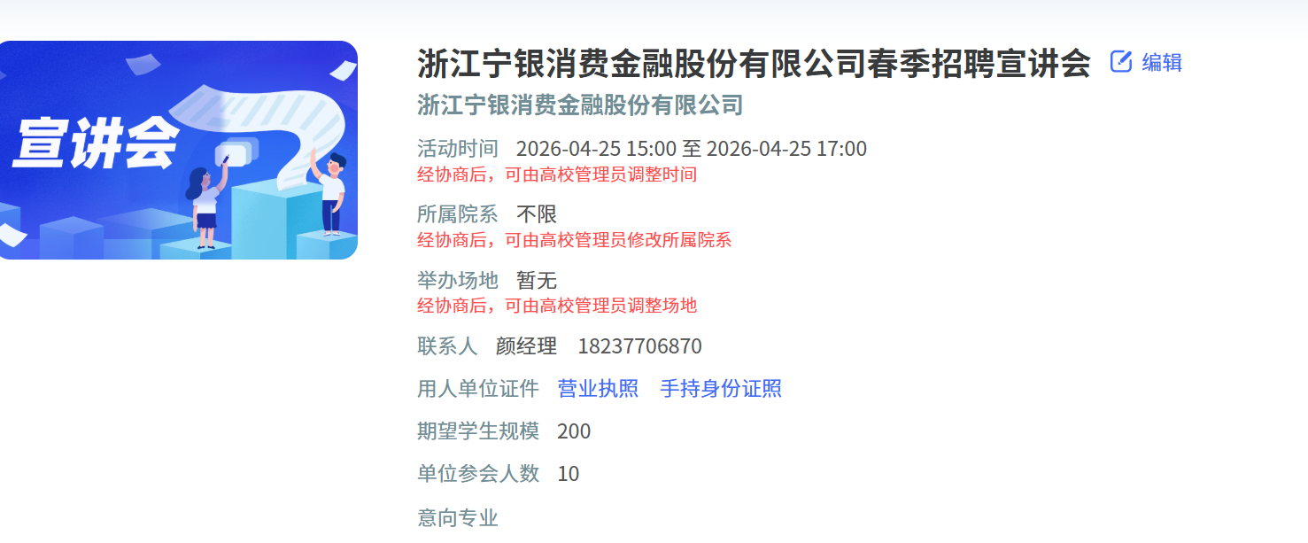浙江宁银消费金融股份有限公司春季招聘宣讲会