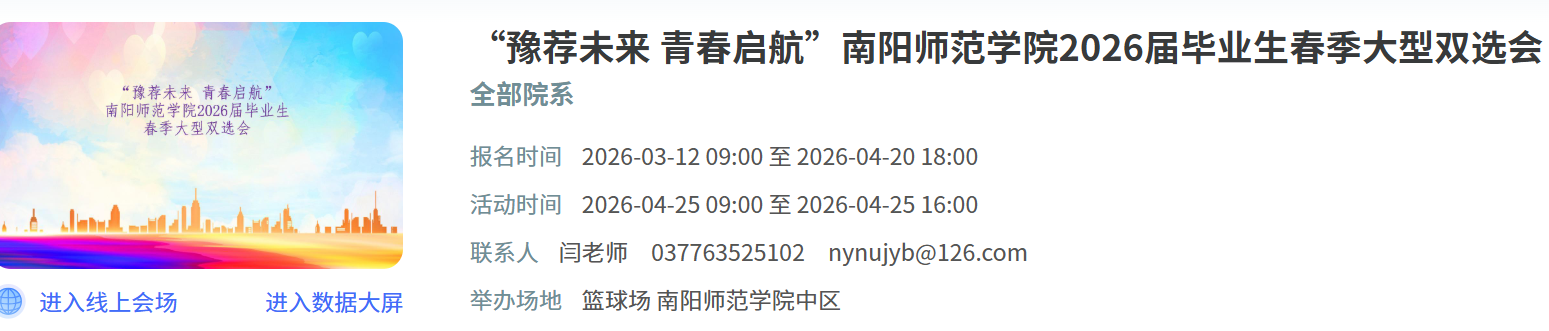 “豫荐未来 青春启航”南阳师范学院2026届毕业生春季大型双选会